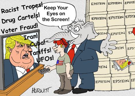 Wannabe president - for - life Trump floats the idea of cancelling the 2026 midterm elections, telling Reuters that, “when you think of it, we shouldn’t even have an election.” When President Volodymyr Zelensky informed Trump elections were not held in Ukraine because of the war, Trump gushed, “So you mean if we happen to be in a war with somebody, no more elections? Oh, that’s good.”