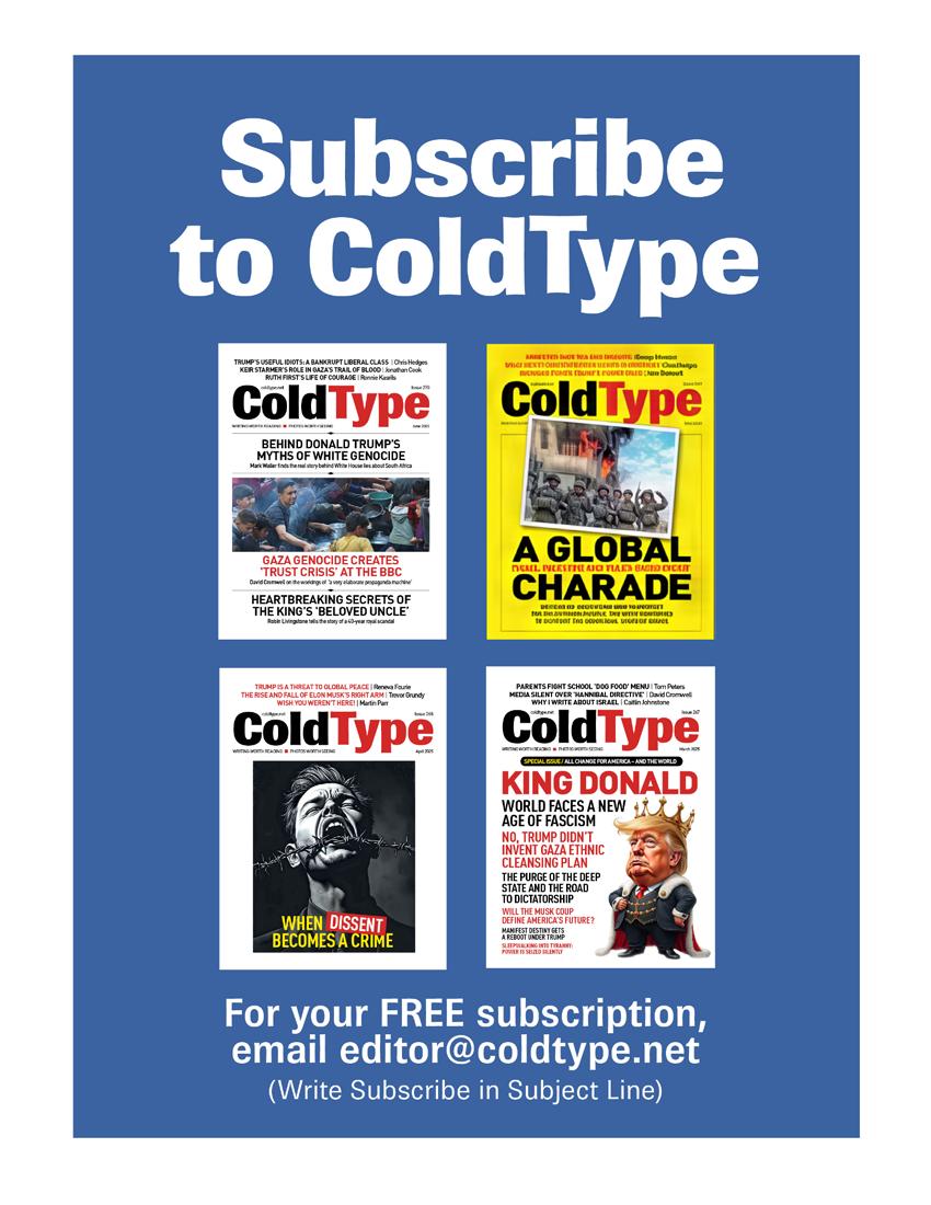 Subscribe: For a FREE subscription e-mail editor@coldtype.net