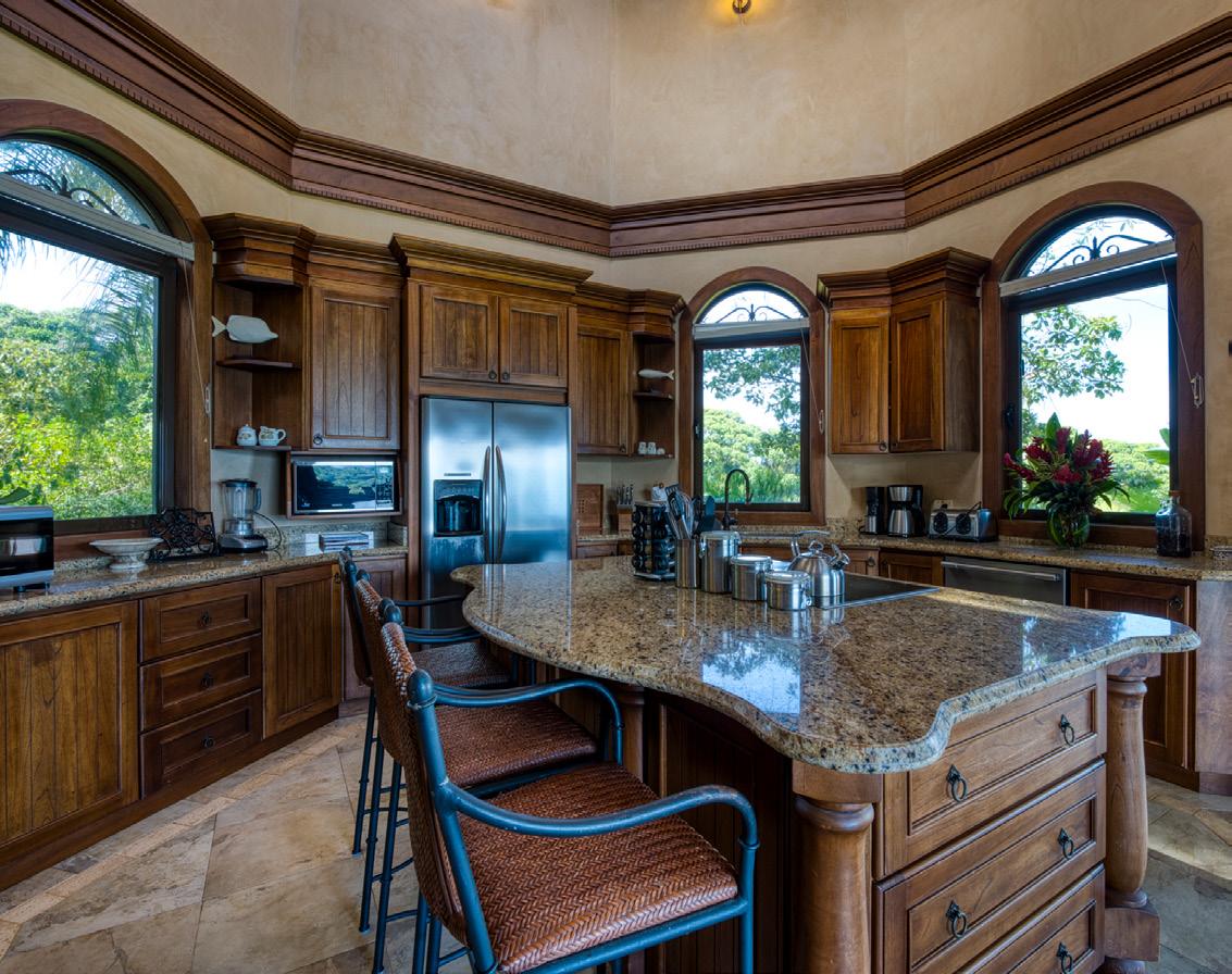 For those who love to cook and entertain, the wellappointed kitchen is a dream come true. It features modern appliances, ample counter space, and custom cabinetry, making meal preparation a joy. Adjacent to the kitchen, the dining area offers a beautiful setting for family meals and gatherings with friends, with large windows that showcase the spectacular ocean views.