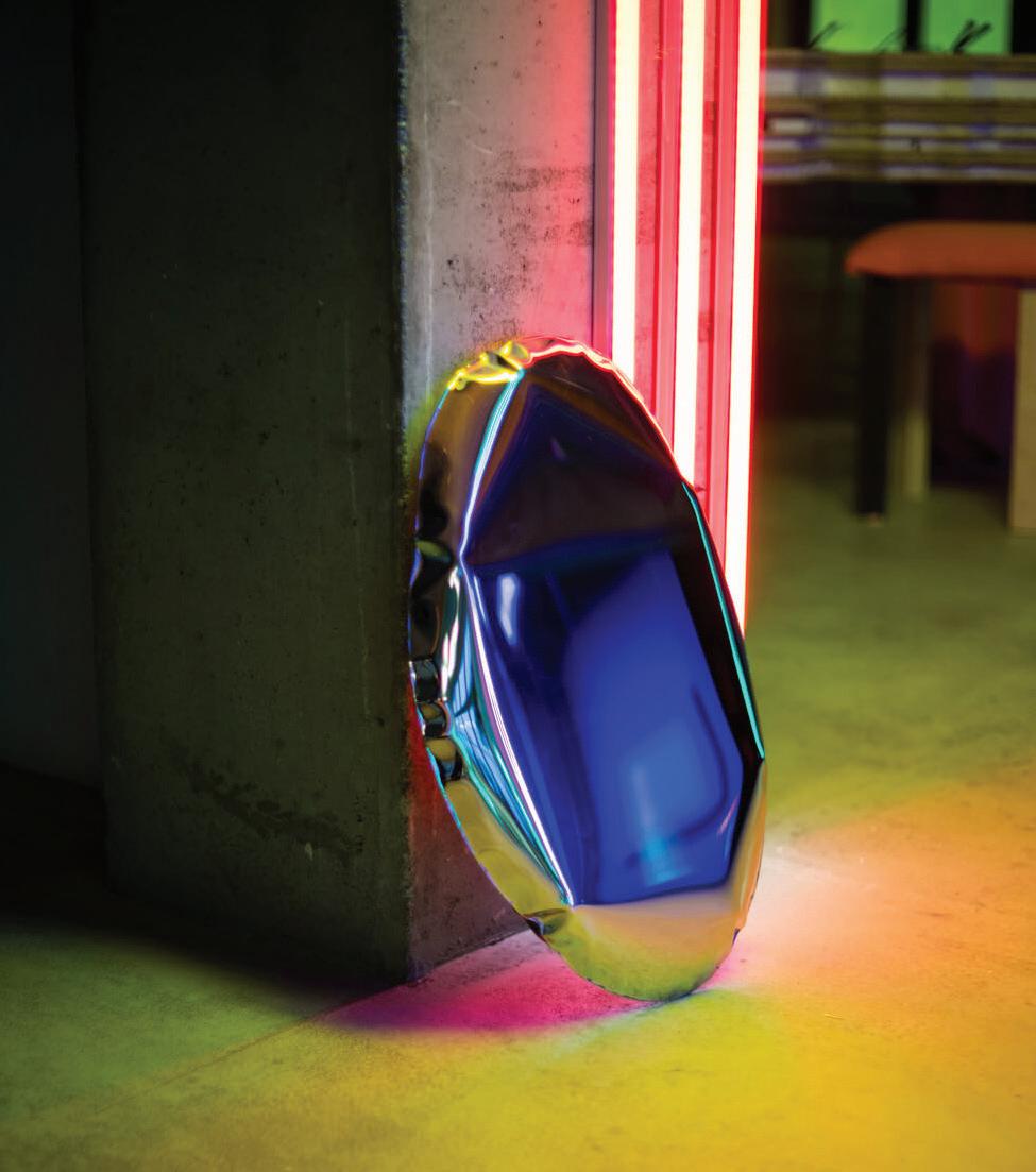 polished stainless steel. Yet Zieta’s creations are not just about enjoying sculpturally beautiful, meticulously crafted pieces of furniture or art. It’s about forming a deeper relationship with natural light as it cascades across the surface, creating an everchanging experience of the material and its reflections.