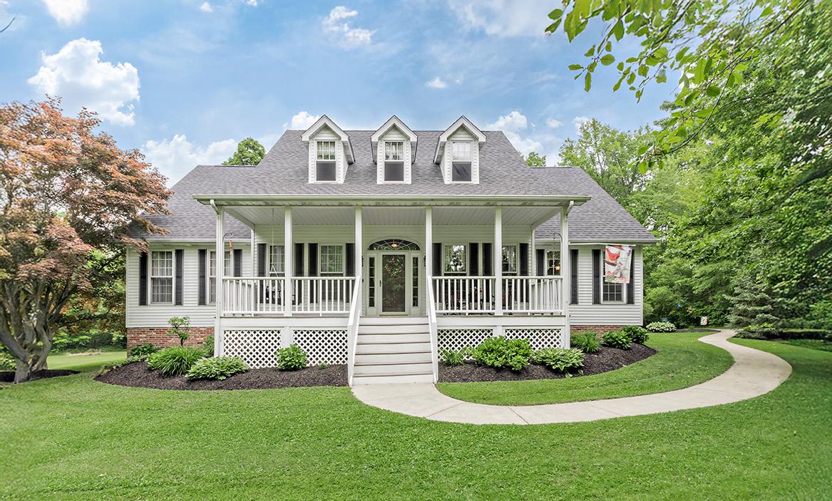 Pristine new home in Novelty on a quiet street with great yard space and privacy. Striking exterior with stone, shake, and vertical siding, plus a wraparound covered porch. Inside, a two-story foyer leads to a bright living room with wood-burning fireplace, private office, mudroom, and half bath. Open kitchen/living/dining flows to the enclosed back porch. Dream kitchen with custom cabinets, SS appliances, herringbone marble backsplash, large island, and farmhouse sink. Upstairs: hardwood floors, luxe primary suite with spa bath, 3 more bedrooms with walk-ins, and full bath. Finished basement includes living space, full bath, and kitchenette plumbing. Enjoy covered porches, garden beds, and sunny yard.