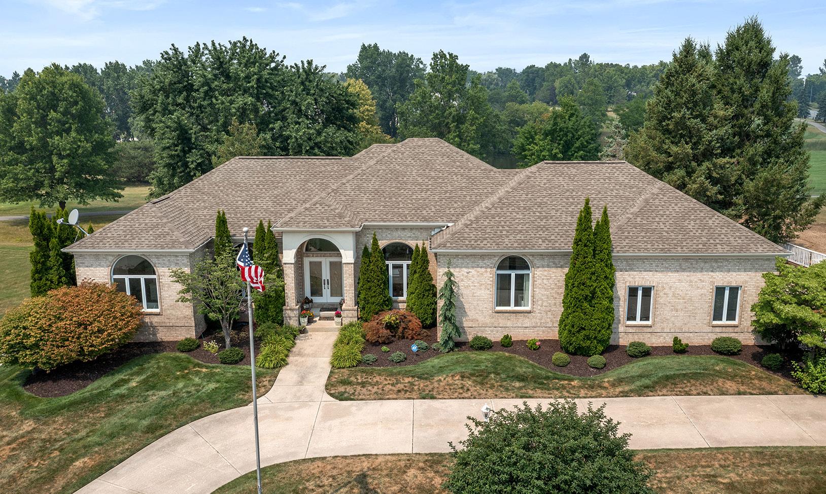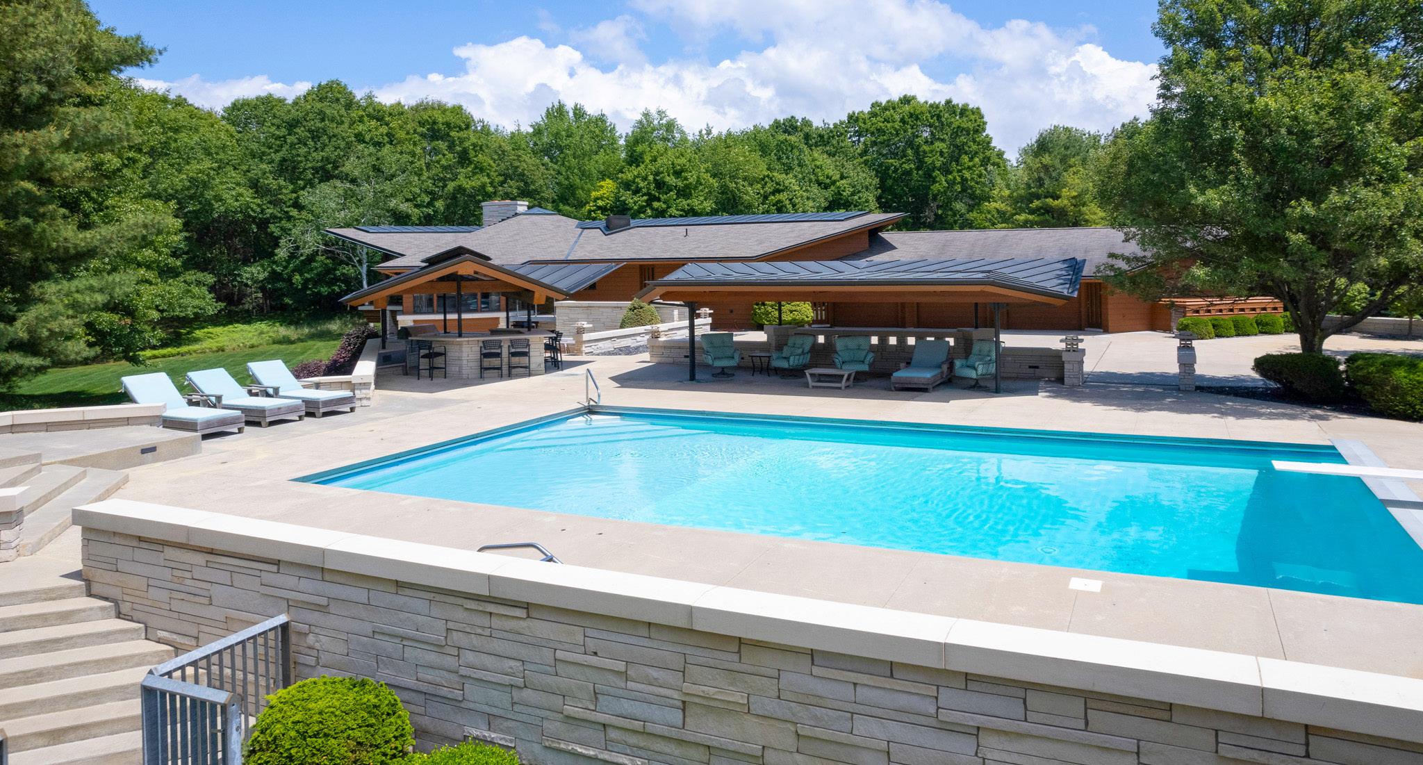 Elegant custom brick estate on over one private wooded acre in a quiet culde-sac. Built by Hearth Homes, this masterpiece features soaring ceilings, stately columns, walls of windows, dual cultured marble fireplaces, and a gourmet cherry kitchen. First-floor owner’s suite with spa bath, plus upstairs second suite. Full walkout basement with bath, heated three-car garage, balcony, pool, and more—true luxury with no detail overlooked.