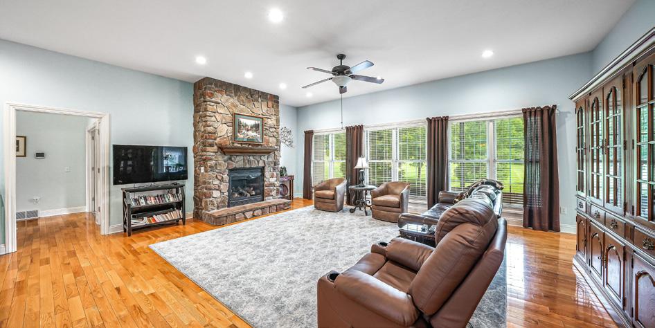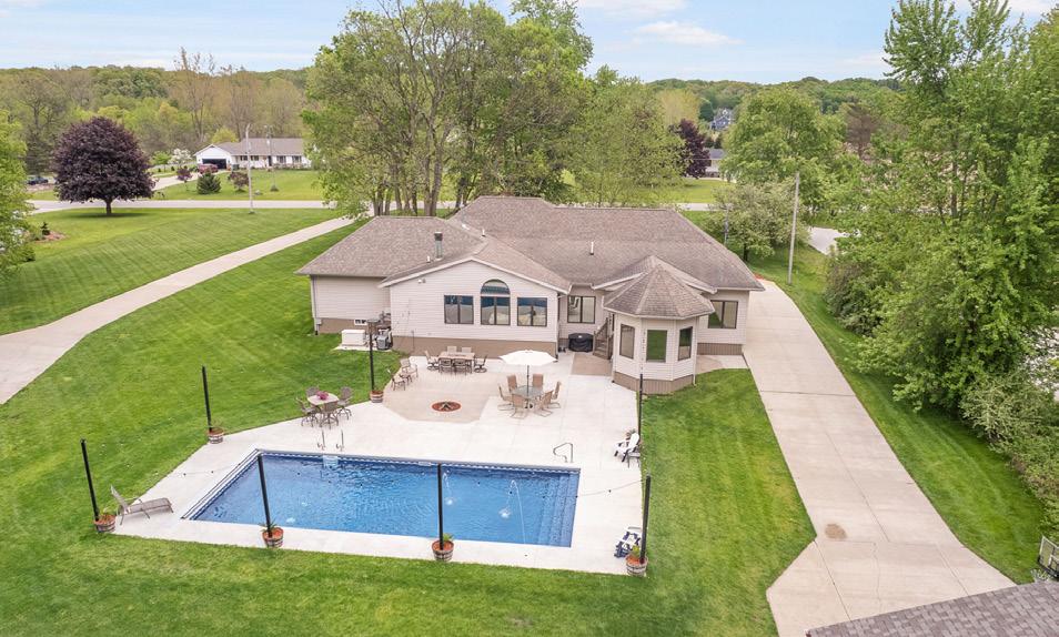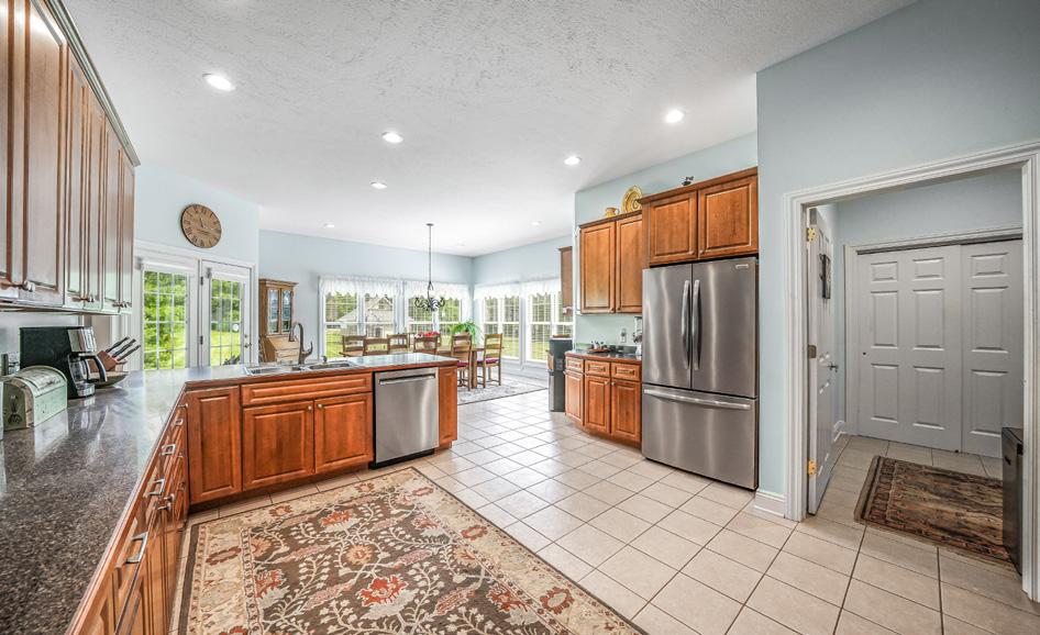 Sprawling ranch with a fully finished basement, located on 3 private acres at the end of a quiet cul-de-sac. The eat-in kitchen features a breakfast bar island and overlooks the vaulted great room, highlighted by exposed beam ceilings and a striking brick fireplace. Step out to the screened-in porch—accessible from both the great room and the owner’s suite—perfect for relaxing and enjoying the peaceful surroundings. Car enthusiasts and hobbyists will love the heated 25' x 24' garage with hot and cold water, plus an 18' x 12' workshop area that can accommodate a third vehicle. CHARDON, OHIO 9165