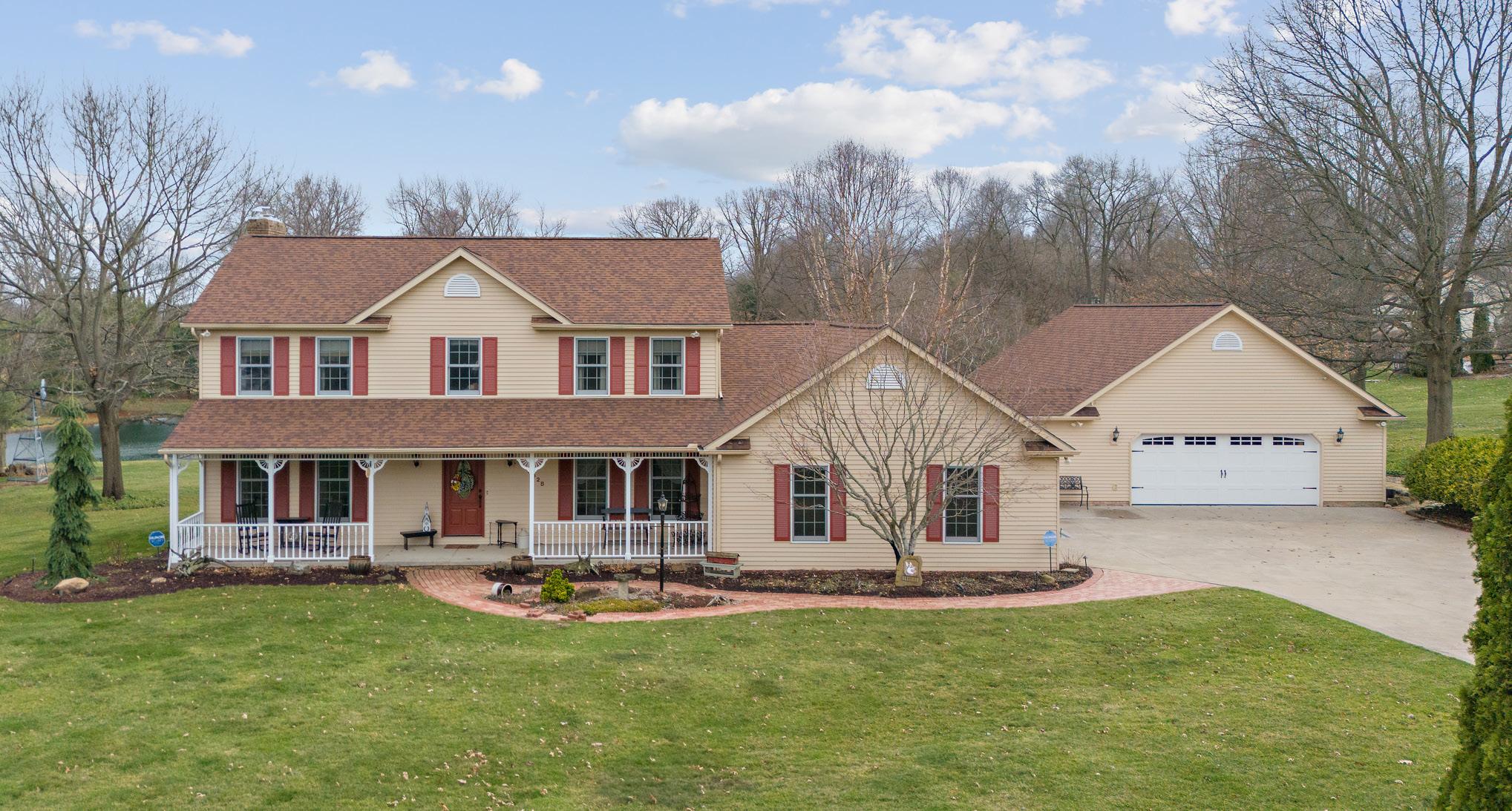Sold at pre-auction offer! This impeccable home is spacious, with an eat-in kitchen, porcelain tile floors and quartz countertops that flows into a family room with a fireplace, as well as an inviting 4 season room that overlooks the well manicured backyard and stocked pond. The main floor also has a large formal dining room and living room with pocket doors for the option of privacy from the family room. The large laundry room and 1/2 bath round out the main floor. Upstairs has 3 large bedrooms, guest bathroom and main bedroom with walk in closet and heated tile floor en-suite. There is a partially finished basement and lots of storage. Owner has a 1260 sq foot custom woodworking shop attached to the large 2 car garage. Many of the cabinets, trim and flooring in the home are custom made, using oak, Brazilian cherry, acacia and hickory. Closets have custom made organizers. The sun room has tounge and groove ceiling, custom built cabinets with a built in flat screen TV. There is a 18x28 barn with a 6x28 covered porch by pond and waterside seating/dining area with fire pit. You will fall in love with this home!