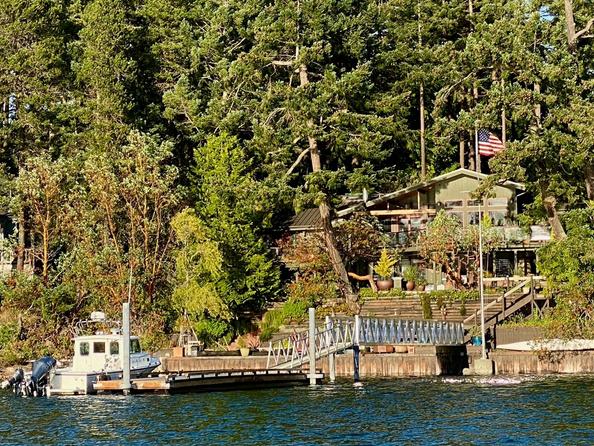 Southwest-facing waterfront home with private dock on Brown Island, offering 3,527 sq ft of beautifully designed living with 3 bedrooms, 2 offices, and 5 baths. This remodeled NW Craftsman 1-story home with a basement blends classic style with modern comfort, featuring an atrium entry, open floor plan, and spacious chef’s kitchen. Most rooms, including the main-level primary suite with deck access, capture stunning harbor and sunset views. The lower level offers a bedroom and bath with a separate entry, ideal for guests or extended living. Outdoor living shines with expansive main-level decks, a sunny waterfront bulkhead patio with steps to the beach, and a private dock on 107 feet of accessible shoreline. A detached golf cart garage/shop, hot tub, and bocce court complete this exceptional setting. Brown Island amenities include community moorage, pool, clubhouse with fitness room, caretaker boat service, and easy access to Friday Harbor by boat. From your decks, enjoy ferries, boats, seaplanes, and the glow of town lights at night. With golf cart parking and a boat launch, this island blends secluded island privacy with easy access to the vibrant town, marina, shopping, and dining of Friday Harbor. An extraordinary Brown Island residence offering spectacular sunsets, premier waterfront living, and an unmatched island lifestyle.