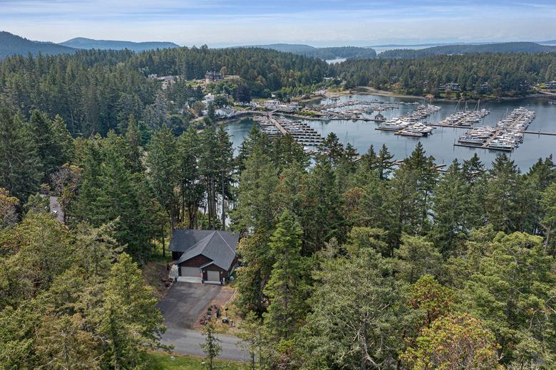 Stunning 4 bedroom, 3.5 bath home in premium location with protected Roche Harbor Marina views. Designed for both comfort and entertaining the spacious layout features an open-concept living area, expansive windows, 7-speaker surround system, 10-ft ceilings throughout the main floor, a propane fireplace, and a 3-car garage. The gourmet kitchen anchors the heart of the home featuring granite counters, a farmhouse sink, and custom cabinetry. The primary suite offers a soaking tub, 3-person steam room, and deck access to the hot tub overlooking the marina. Short walk to airstrip and resort amenities, plus from your yard you can access a popular foot path that leads directly to the resort. Make this your private front-row seat to all the activities Roche Harbor has to offer, including July 4th fireworks.