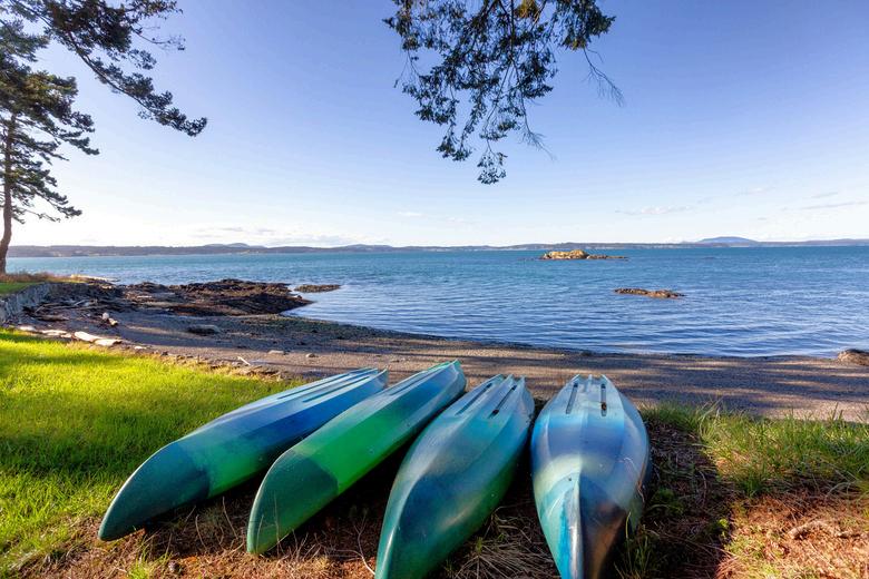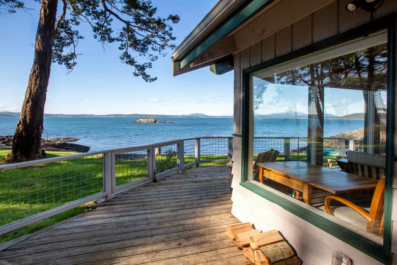 Warm pine paneled Cape San Juan cabin with a no bank sand and gravel beach with a nice rock bulkhead. Cozy wood burning fireplace with rock surround. The recently updated cabin offers one bedroom, plus a den, and two bathrooms. Open kitchen, dining, and living room floor plan offers expansive views of Griffin Bay. Included in the purchase is a Tiny Home still on wheels which is considered personal property. The Tiny Home offers a Murphy bed and living space. Only three concrete steps lead down to the 131 feet of beach. Harbor Island which is a national bird sanctuary brings in all kinds of wildlife in addition to our winged friends. Sea lions, seals, eagles, geese, ducks, blue herons, and oyster catchers frequent the vista in front of the cabin. Deer and fox are also visitors to the cabin. All kinds of fishing nearby and excellent Dungeness crab fishing is located about ¾ miles west in Griffin Bay. Cape San Juan offers community water, roads, pool, moorage facility, and a expansive gravel community beach near the entrance. The neighborhood is adjacent to Cattle Point State Park and American Camp National Park which has spectacular trails and beaches. This property is one of the nicest in the islands with its beach and wildlife.