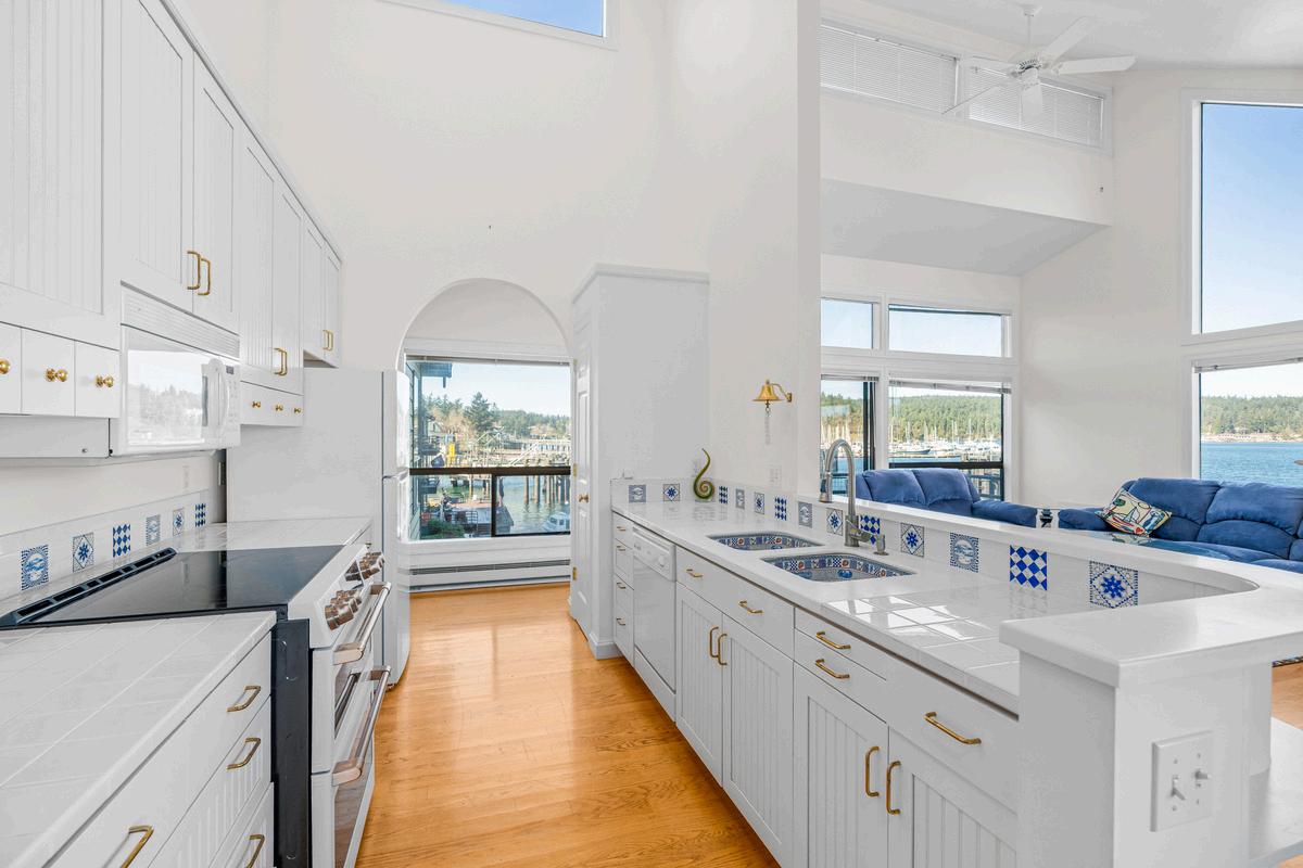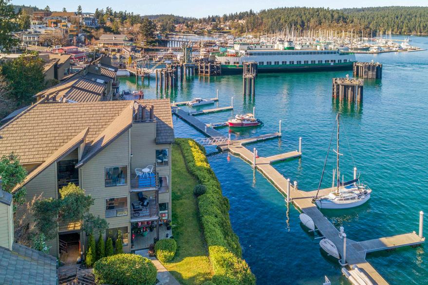 Absorb the island magic with floor to ceiling windows and hypnotic water views. This beautifully updated property offers 3-bedroom, 2-baths on one level with 1,413 sq ft of inviting coastal living. Take in the panoramic Friday Harbor views and enjoy the vibrant activity from your living room. Life is easy with low maintenance, amazing beauty, and incredible convenience. This bright, light, and open design features an interactive kitchen-family room, wood burning fireplace, and two private view decks. Enjoy morning coffee, stunning sunrises and sunsets, and dining al fresco on those perfect summer nights. Inside, the entire home has been thoughtfully remodeled with modern finishes and hardwood floors throughout, creating a fresh, clean, and stylish interior. Lovely furnishings are included, making this a truly turnkey opportunity. An entry deck with a generously sized storage locker adds practical convenience. Situated in the hub of Friday Harbor, you’re just a short stroll to the ferry, marina, shops, restaurants, and town amenities. A nearby covered parking space provides added ease Ideal as a full-time residence, vacation retreat, or investment property, this exceptional waterfront condominium combines unbeatable location, stunning views, and refined modern comfort. Located in waterfront Cannery Village including lush landscaping, lovely walkways and gorgeous rock retaining walls within a community of stylish condominiums.