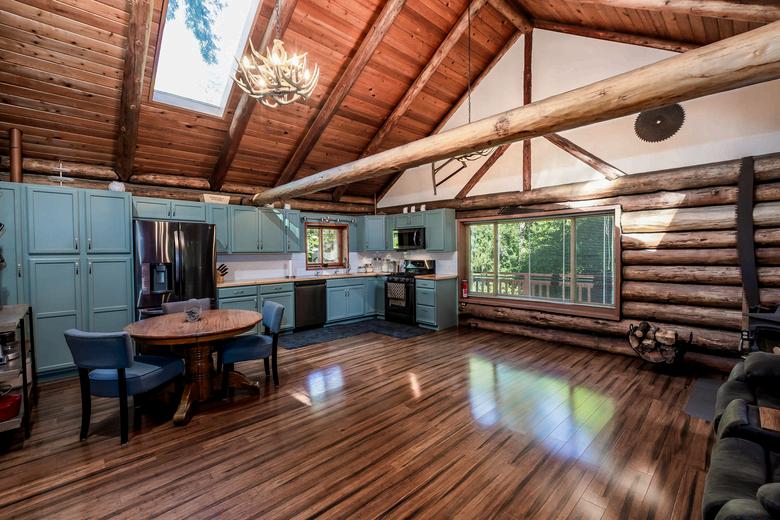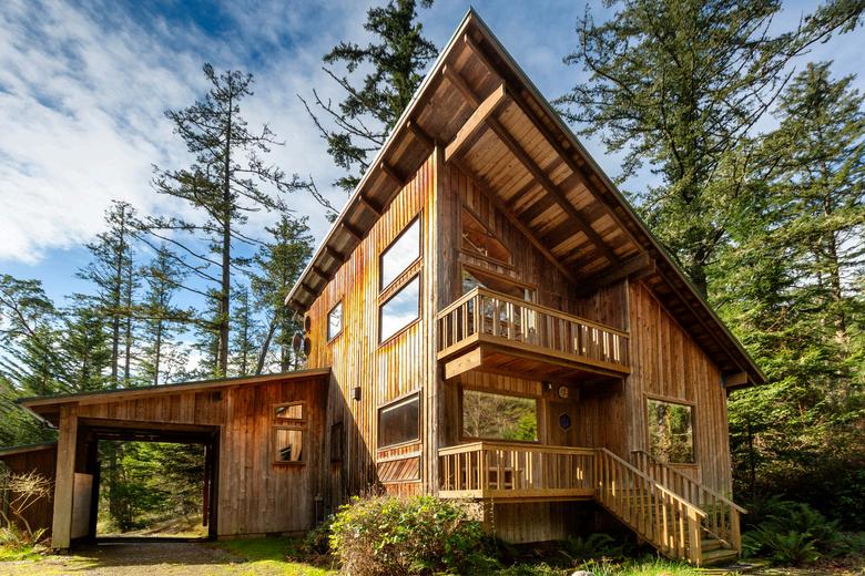 On the grid or off, your choice. Twelve outstanding deer-fenced acres, 1.16 mi from town center, with a custom 3080 sf home utilizing wood burls from Alaska, 675 sf log guesthouse with vacation rental permit, both overlooking the lake, 600 sf studio with bathroom, 140 sf studio, 550 sf detached garage, 3200 sf multipurpose shop with walk-in cooler, Starlink internet, 46 solar panels with bank of huge batteries, automated back-up generator, 2000 gallons of underground propane storage, large fruit and nut orchard, commercial garden including mature blueberry and raspberry bushes, a greenhouse, large chicken run, and a 2 acre lake. Commercial opportunity and/or completely self-sustaining if needed or desired. (See agent remarks for gate code.)