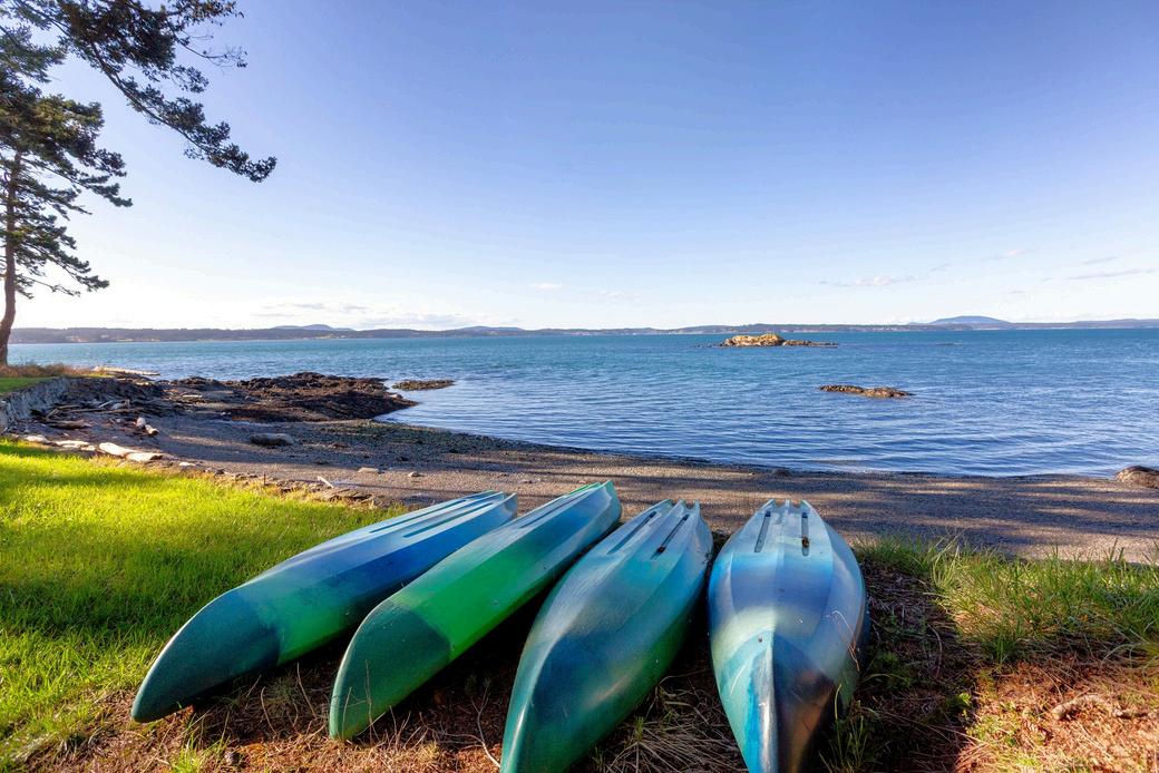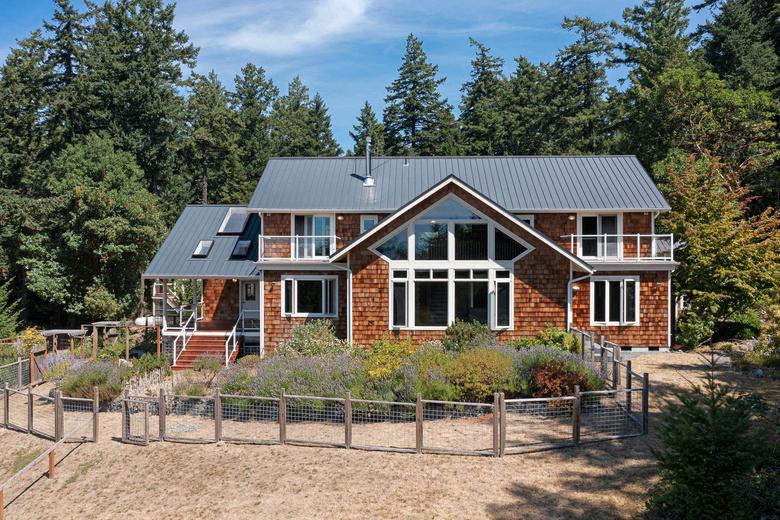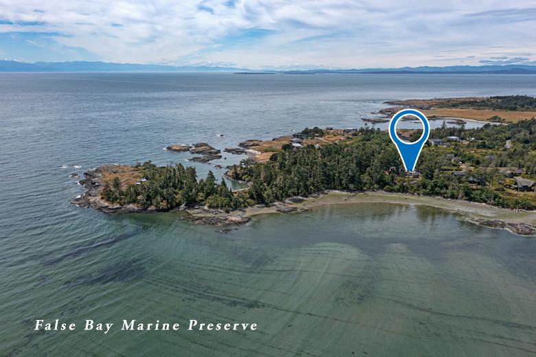 Understated elegance in this architecturally pleasing 2142 +/- SF Cape Cod beach home. Private setting on over 1 acre, with tranquil and everchanging views into False Bay and your own private beachfront. Parcel offers towering firs, garden area, stunning landscaping features, slate firepit/patio for outdoor entertaining. Walking distance to the community beach, almost next door! Good access to your shoreline area for beach exploring /kayak launching. Two private bedroom suites for ultimate privacy, great room with soaring light filled vaulted ceilings, open kitchen concept perfect for entertaining, a hobby room, and views from every room. Updated bathrooms, new stunning copper roof and gutters. Detached shed for equipment/kayaks. This charming shingled home is featured in The New Cottage Home book, a testament to design excellence and charm. By Appt.