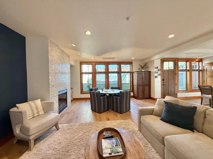 Live where the action is in the vibrant core of Friday Harbor! Just steps to the marina, ferry, restaurants, and shopping, this beautifully remodeled 1,628 sq ft condo offers the perfect blend of luxury, comfort, and convenience. Enjoy views of the harbor, ferry arrivals, seaplanes, and boating activity from the roof top deck. The open-concept living space features a dramatic floor-to-ceiling marble tile propane fireplace and abundant natural light. The chef’s kitchen is designed to impress with stainless steel Bosch appliances, induction range, generous eat-in island, quartz countertops, and marble backsplash. Two spacious bedrooms and two full baths include a stunning primary suite with vaulted ceilings, spa-inspired 5-piece bath with dual sinks and soaking tub, and a walk-in closet with custom built-ins. Mini-split heat & A/C ensure year-round comfort. Secure coded entry, elevator access, and dedicated parking for your island car in a secure garage provide convenience and peace of mind. Move-in ready and perfectly positioned in the heart of San Juan Island enjoy effortless island living with harbor views.