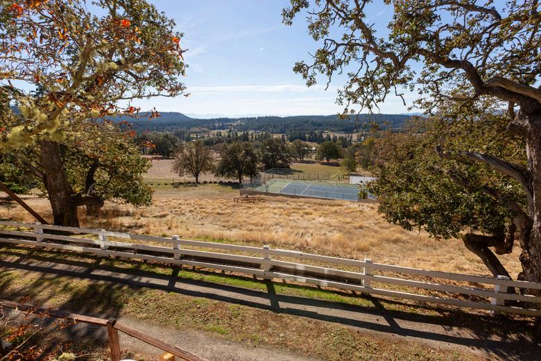 Sunny, private and distant water view home on 4.13 park-like acres perched behind the 48-acre Twin Oaks Farm with graceful southwest pastoral views toward the Alpaca Farm and to Canada. The property borders the 696 acres of National Park including English Camp National Park, Young Hill and miles of hiking and riding trails. Spacious level entry home with lower level, 2944 Sq Ft with open plan, 2 fireplaces, large decks, covered car entry and garage with studio built in 1977 is ready for your personal touches. Includes water storage shed, garden shed and newer whole house generator and heating/ac system. Close to Westcott Bay Oyster Farm, Roche Harbor Resort w/marina, restaurants, groceries, retail, airport, art walk, and trails.