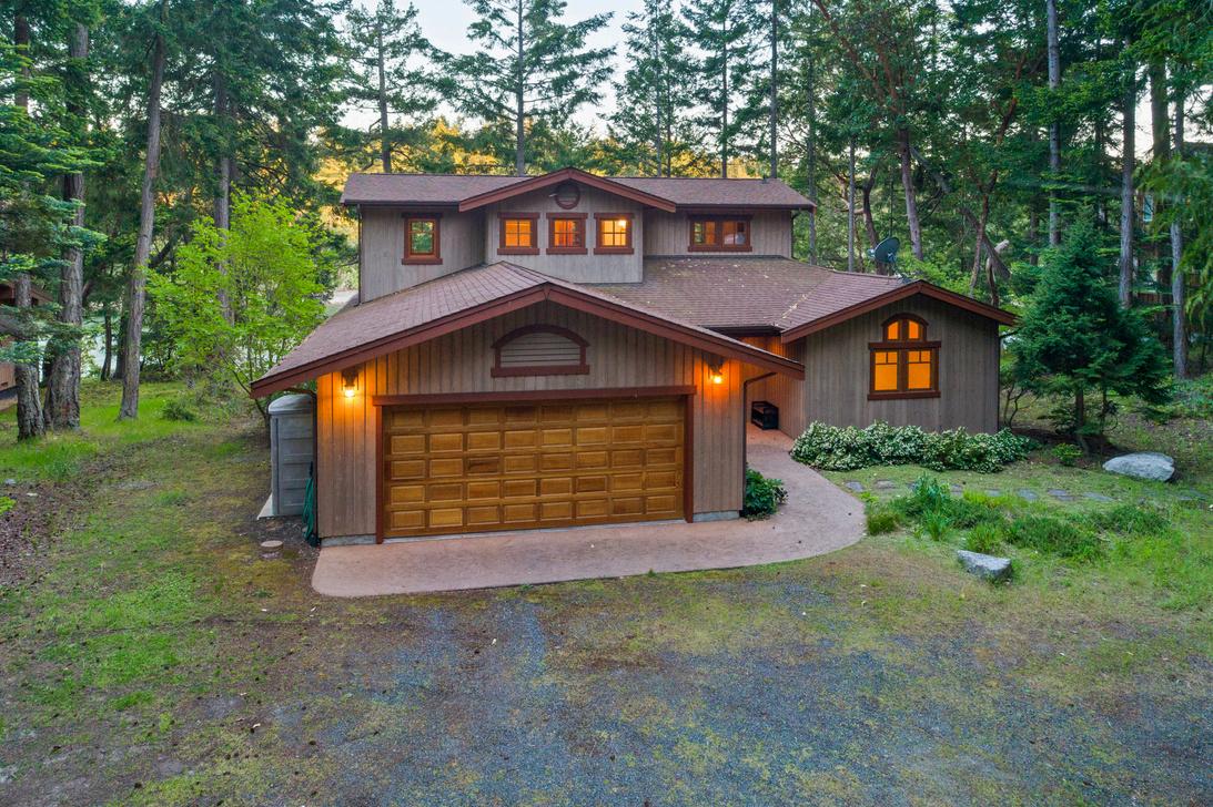 Discover waterfront living with this stunning property and beautiful Griffin Bay views. This spacious home on 3.3 acres, features 3 bedrooms, 3 baths and separate attached apartment with additional bedroom and bathroom perfect for guests. The home includes an office and bonus room, ensuring plenty of space for work and leisure. Attached 2 car garage, porte cochere and detached garage sized for boat and shop, storage space, bathroom, and small home gym w/workout Lululemon Mirror. Stairs lead to a gravel beach & mooring buoy. With a new septic system & private well, fruit trees, swim spa, generator and solar panels, this is a dream property. Two separate parcels, this property is an ideal blend of privacy and accessibility close to town.