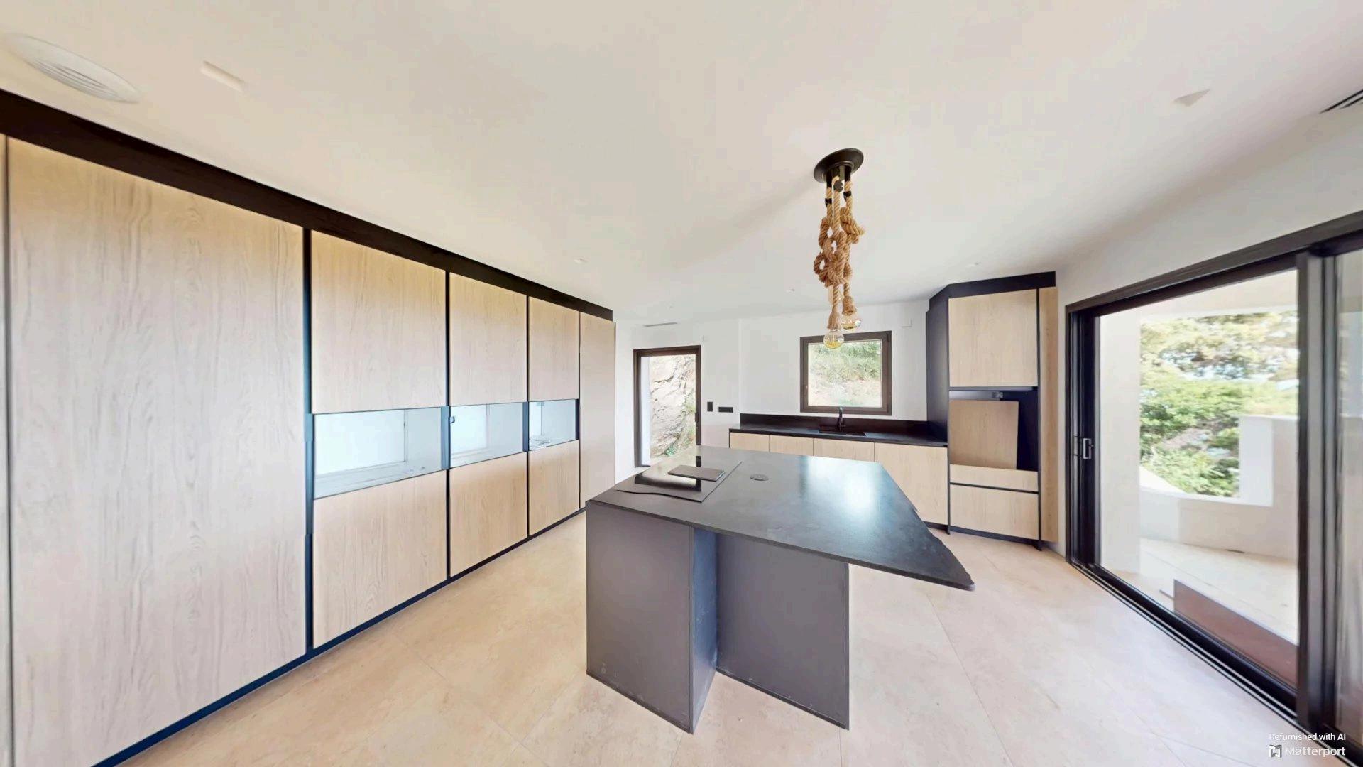Dès l’entrée, de vastes espaces lumineux s’ouvrent dans une atmosphère chaleureuse et résolument fonctionnelle. Le rez-de-chaussée accueille un double séjour baigné de lumière avec cheminée, agrémenté d’une cave à vins creusée dans la roche, une cuisine équipée & aménagée, ainsi qu’une élégante suite parentale avec salle de bains et dressing. Les pièces de vie s’étendent naturellement vers l’extérieur grâce à une terrasse semi couverte, qui domine la piscine à débordement avec la mer en toile de fond.