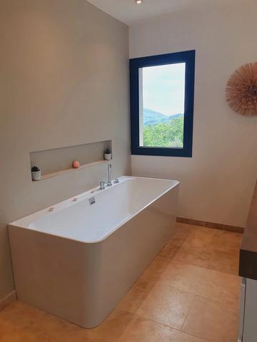 Pensé pour le confort, l’espace nuit à l’étage comprend trois chambres avec salles d’eau et WC privatifs. La suite parentale propose une salle de bains complète, un dressing walk-in et des toilettes séparées