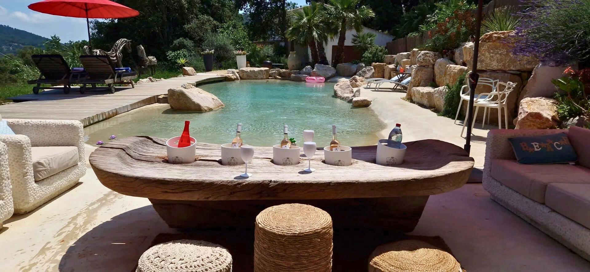 The property has been designed for relaxation and enjoyment, featuring a children’s play area, a natural spring with a dedicated relaxation space, a free-form saltwater pool, and a superb pool house with a covered terrace, offering an ideal setting to host family and friends or to develop an independent activity.