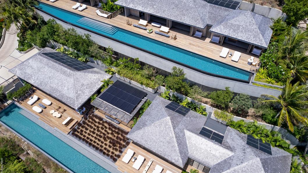 Au cœur du domaine, un bassin végétalisé avec cascade, habité de carpes koï japonaises, compose un univers à part : un sanctuaire intérieur où l’on ressent la sérénité d’un palace asiatique et la magie tropicale de Saint-Barth.