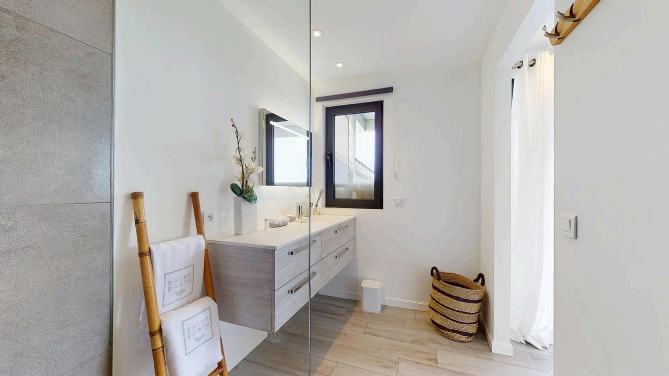 Deux chambres profitent d'une magnifique vue sur la mer et le lagon de Grand Cul de sac, tandis qu'une troisième chambre dispose d'une terrasse agréable. Trois salles d'eau apportent confort et praticité.