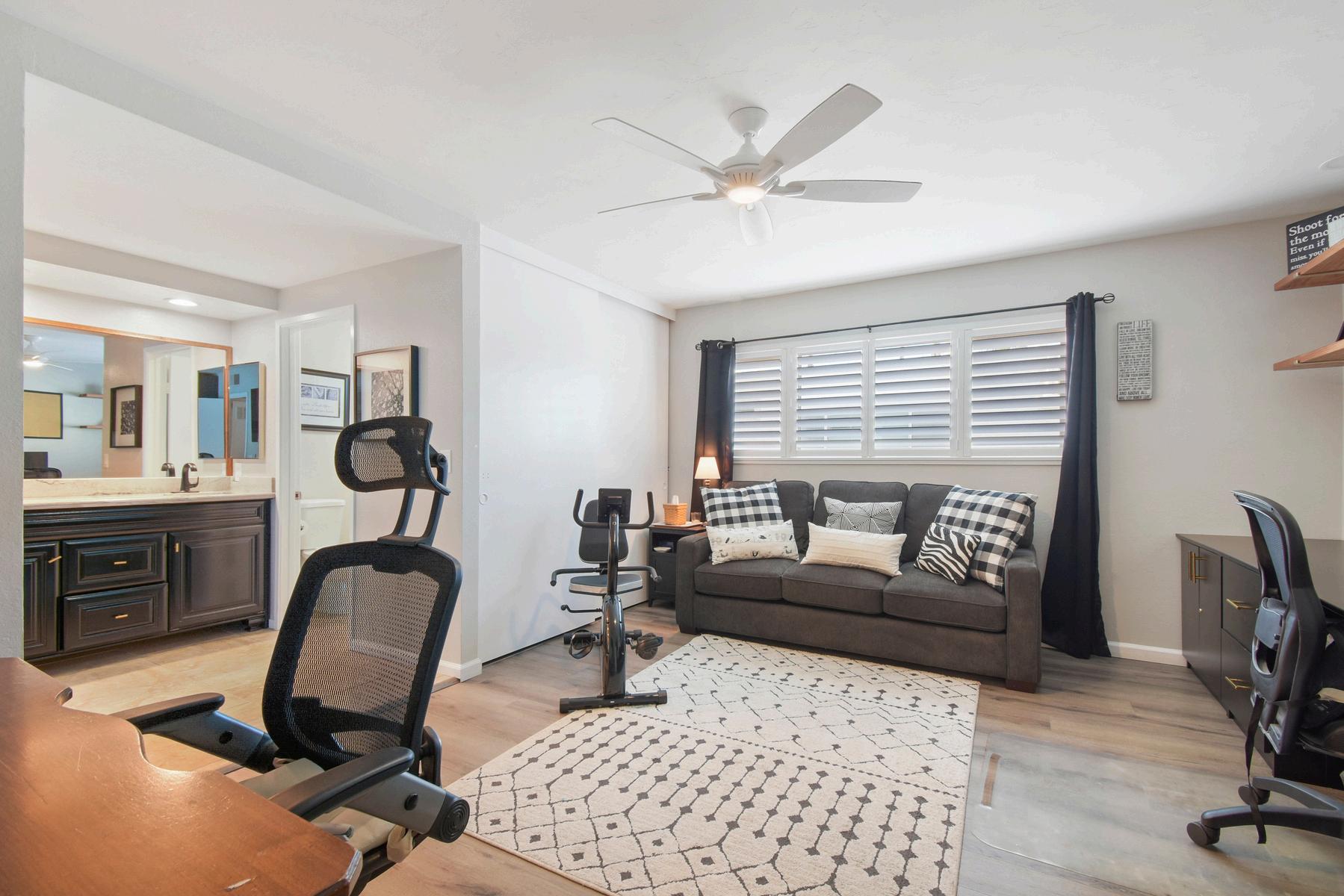 Located in the sought-after Vista Del Cerro community, this beautifully remodeled split-level townhome perfectly blends style and comfort. As you step inside, you'll be greeted by new flooring and a fresh custom paint job that sets a modern tone throughout the home. The spacious layout features two generously-sized bedrooms, each with its ensuite bathroom, offering privacy and convenience. The primary bathroom was completely remodeled less than a year ago. A half bath on the main level is convenient for guests. The heart of this home is the stunning kitchen, brand-new cabinets, a pantry for extra storage, and gorgeous quartz countertops with a waterfall edge and all-new stainless steel appliances.