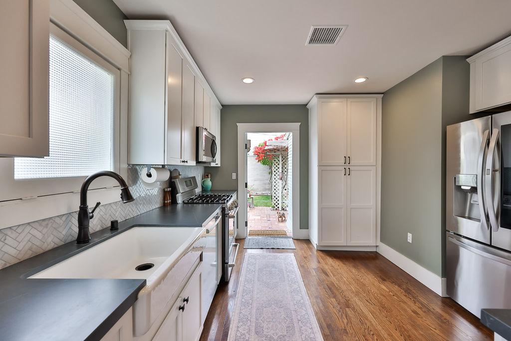 Adorable 2-bed 2-bath craftsman-style home in the desirable Morley Field area of North Park! Tastefully restored with a newer kitchen, the living room offers an abundance of light with a fireplace, updated bathrooms, and hardwood floors. The primary bedroom offers its own bath with storage. Private fenced backyard with covered patio, perfect for entertaining. Long driveway with a 1-car oversize detached garage. Steps away from Morley Field with access to Tennis courts, swimming, golf, and dog park. North Park offers restaurants, bars, local breweries, bouquets, and local coffee shops. Neighborhood favorites such as Wormwood, The Smoking Goat, Grand Ole BBQ, Thorn Brewing, Coffee and Flowers, Caffe, Calabria, and Influx Coffee just to name a few.