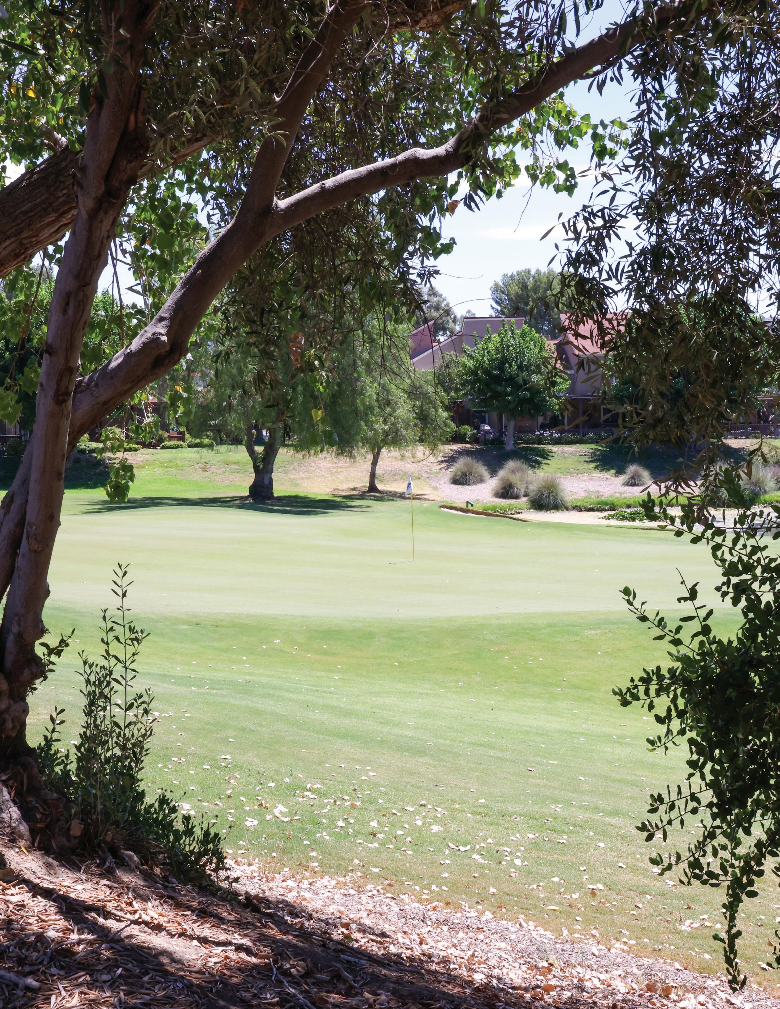 Amazing location on the 12th Green and pond of the San Vicente Golf Course. Updated 2-bedroom, 2-bathroom condo with quartz counter island, newer appliances, wood-look tile and new carpet flooring, decorative wrought iron slats and custom hand rails on stairs. Spacious primary suite upstairs with slider to view deck, open living room with soaring ceilings with skylight and wood burning stove