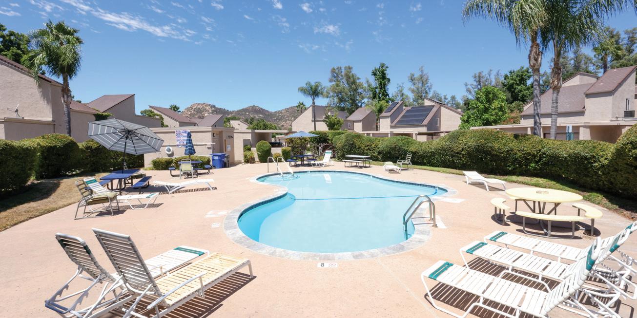 insert in fireplace, and 1-car garage with direct access into the home plus a carport. The patio is over sized, covered and has privacy lattice. Just steps away from the complex swimming pool plus all the amenities of San Diego Country Estates: PGA Championship golf course, 15 miles of non-motorized trails, 2 equestrian facilities, park, playground, volleyball, basket ball, tennis and pickle ball courts.