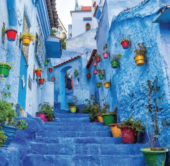 refugees who sought protection in Chefchaouen in the 1930s. Wandering through the alleys is a full immersion into a mesmerizing sea of blues, from pale pastels to deep indigos, leaving visitors in awe of the city’s unique and enchanting beauty.