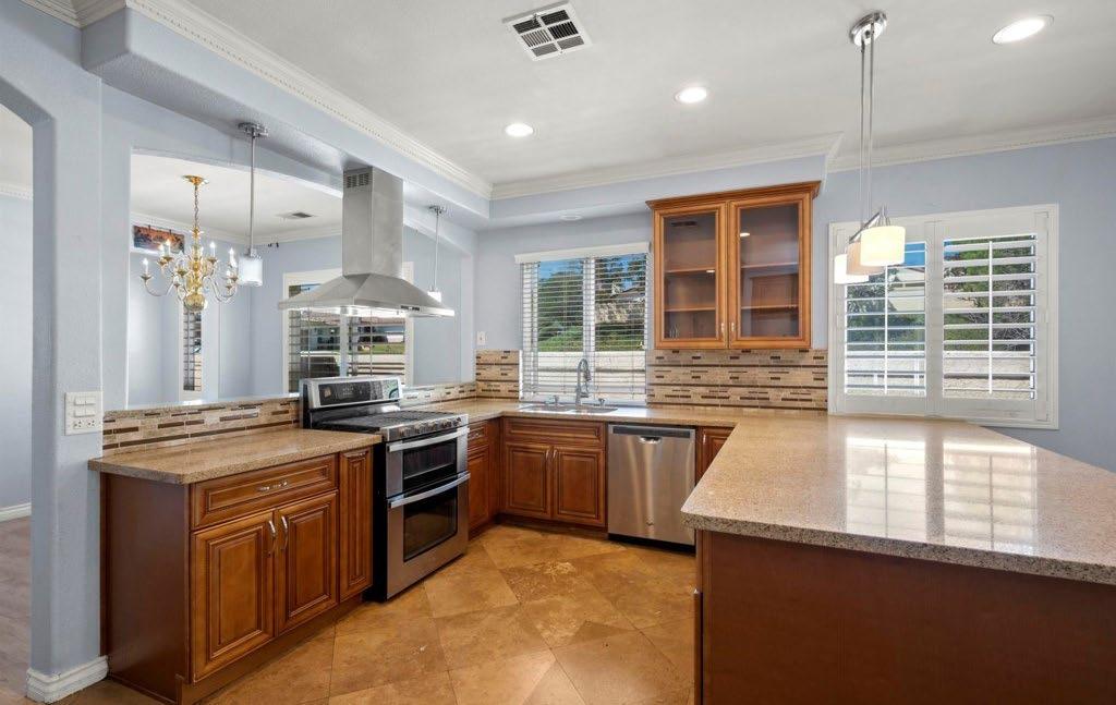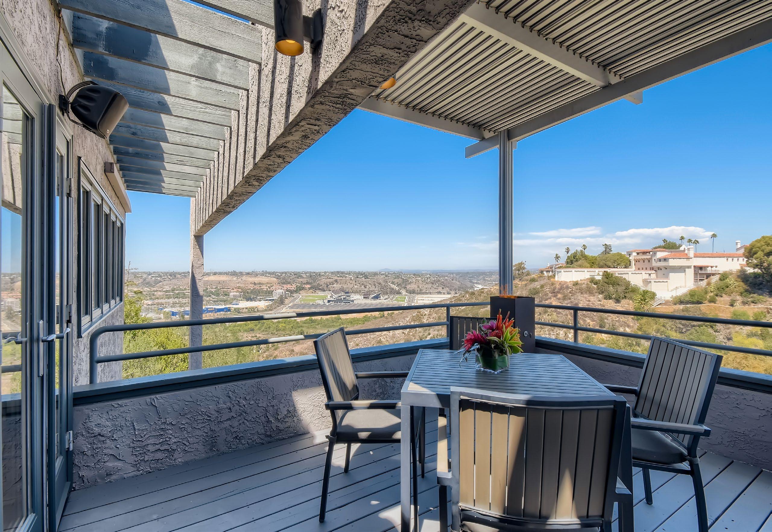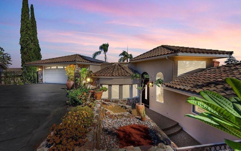 views and space for guests to mingle. Whoever’s cooking will appreciate the large kitchen area with premium stainless-steel appliances and loads of storage and counter space, while modern and stylish bathrooms round out the thoughtful interior. The 16,300+ est. sq. ft. lot includes a robust assortment of fruit trees including mango, lime, lemon, guava, grapefruit, pomelo, atemoya, kumquat, orange and a passion fruit vine. This is San Diego canyon living at its finest.