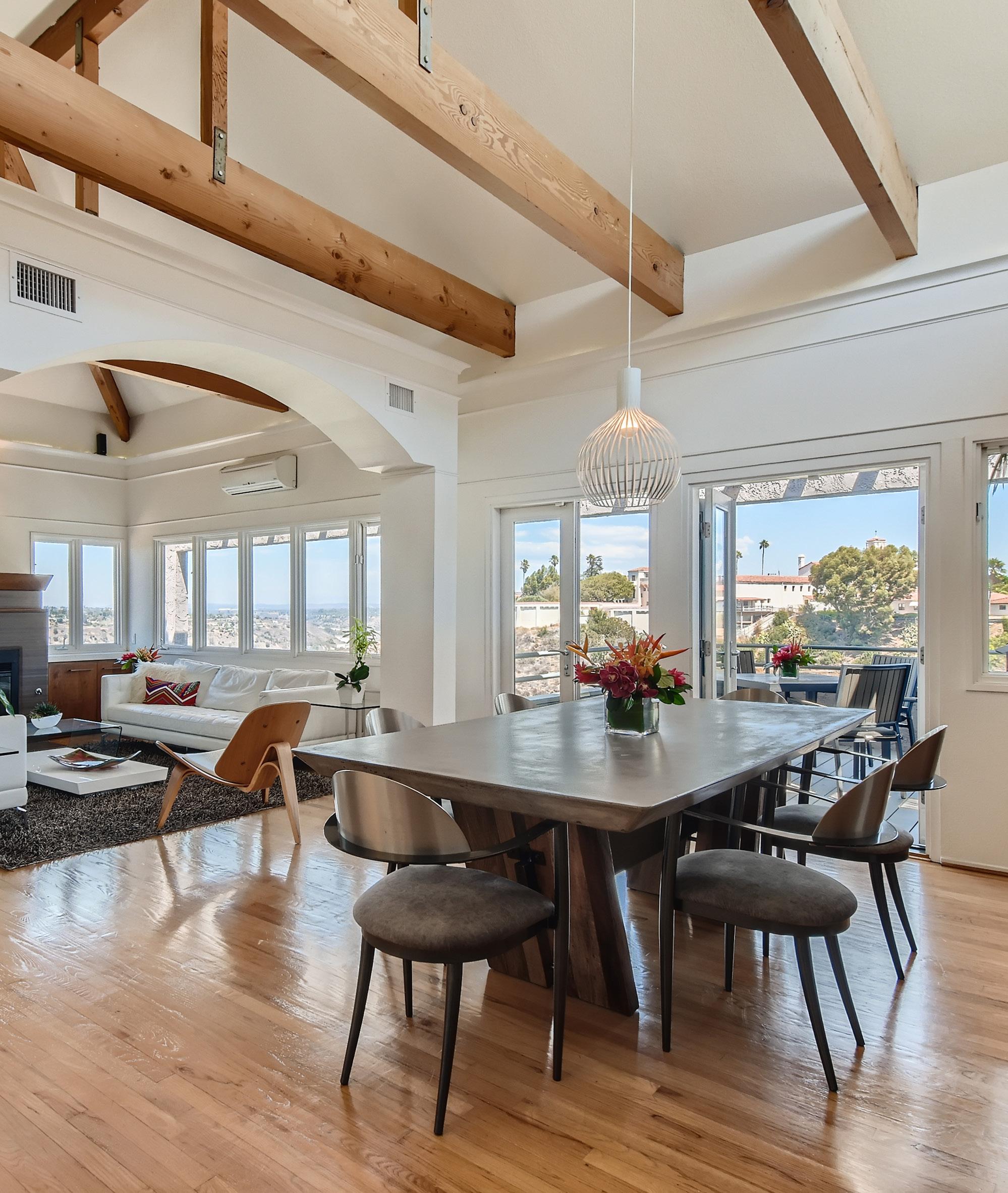 Get ready to be wowed by the incredible charm, privacy and views from this postmodern home. You’ll be drawn into the living room and open dining area by the wonderful light brought in from the many windows. Beautiful wood floors, tall ceilings and exposed wood ceiling beams finish off the living and dining area in style. Love to entertain? You’ll have multiple outdoor spaces to choose from – both the expansive patio (with gas fire pit) and the deck area (with gas fire torches) offer incredible
