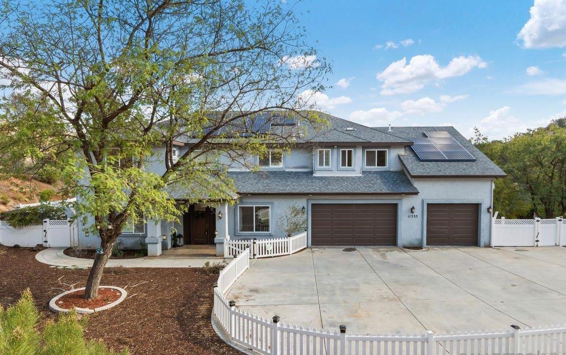 views and space for guests to mingle. Whoever’s cooking will appreciate the large kitchen area with premium stainless-steel appliances and loads of storage and counter space, while modern and stylish bathrooms round out the thoughtful interior. The 16,300+ est. sq. ft. lot includes a robust assortment of fruit trees including mango, lime, lemon, guava, grapefruit, pomelo, atemoya, kumquat, orange and a passion fruit vine. This is San Diego canyon living at its finest.
