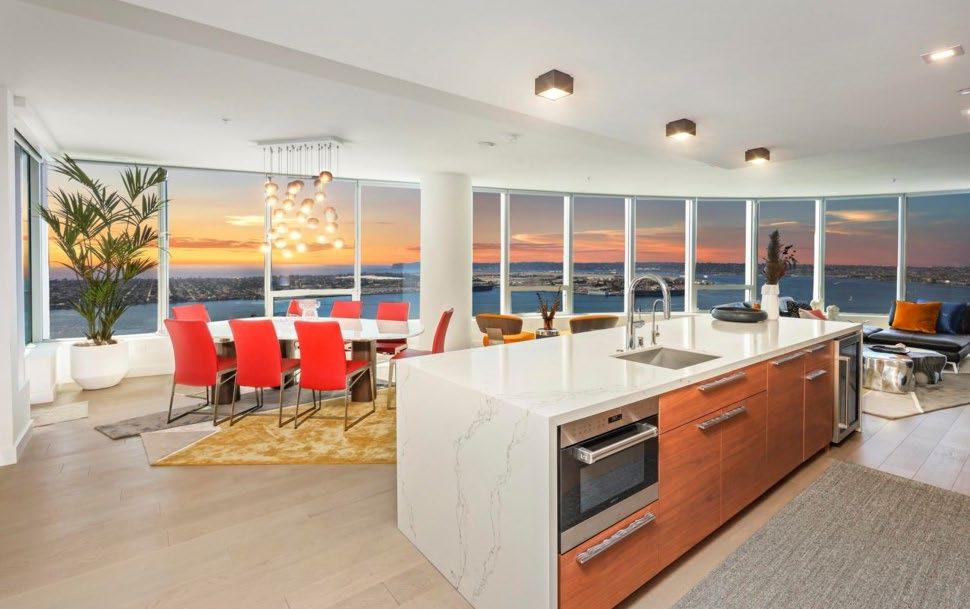 views and space for guests to mingle. Whoever’s cooking will appreciate the large kitchen area with premium stainless-steel appliances and loads of storage and counter space, while modern and stylish bathrooms round out the thoughtful interior. The 16,300+ est. sq. ft. lot includes a robust assortment of fruit trees including mango, lime, lemon, guava, grapefruit, pomelo, atemoya, kumquat, orange and a passion fruit vine. This is San Diego canyon living at its finest.