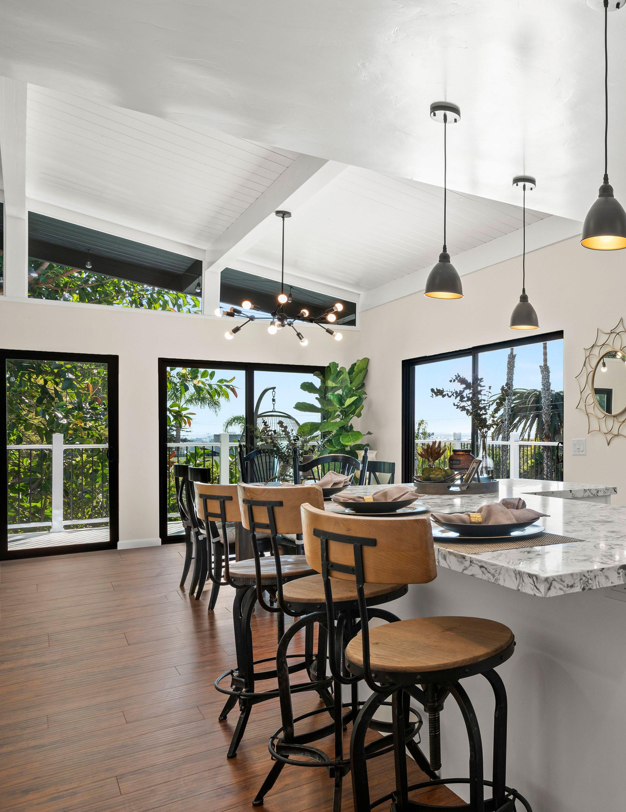 Welcome to Point Loma perfection. This luxury remodel will please the pickiest of palates and boasts so many unique details and options. Just wait until you see the amazing firstfloor primary retreat with a private outdoor lounge area. You will love the oversized walk-in closet and bath, sparing no expense with amenities. Enjoy a quiet night relaxing next to your private fireplace. This home has approved plans with the city for the conversion of the downstairs primary into a permitted ADU with private access and a kitchen. The designer kitchen offers an