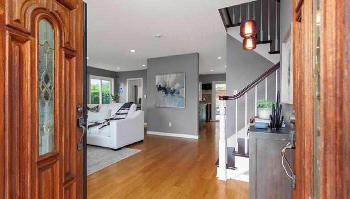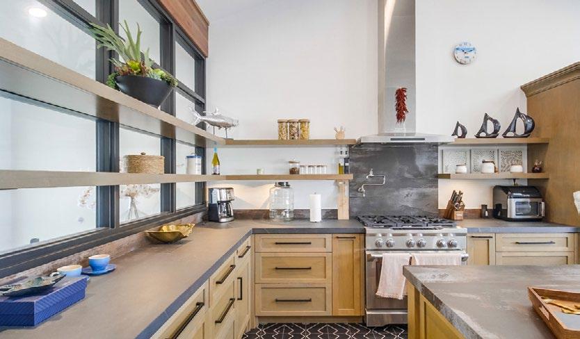 Experience unparalleled coastal luxury with this impeccably remodeled single-level home in the exclusive Coronado Cays. Boasting a bright, openconcept design, this coastal contemporary residence features four skylights in the great room, infusing the space with abundant natural light. The entertainer’s gourmet kitchen is a true showpiece, with a central island, Dekton countertops, and high-end KitchenAid appliances—including a wine fridge, refrigerator, 6-burner gas range, microwave, and dishwasher— creating an ideal setting for sophisticated gatherings. Inside, the thoughtfully designed layout offers refined touches throughout, including a private office, a luxurious primary suite with an en-suite bath, and a versatile second bedroom. Beautiful chandeliers grace the kitchen and dining areas, adding elegance, while hardwood floors and premium finishes enhance the home’s timeless appeal. Cleverly concealed barn doors reveal both the office and a laundry area with a