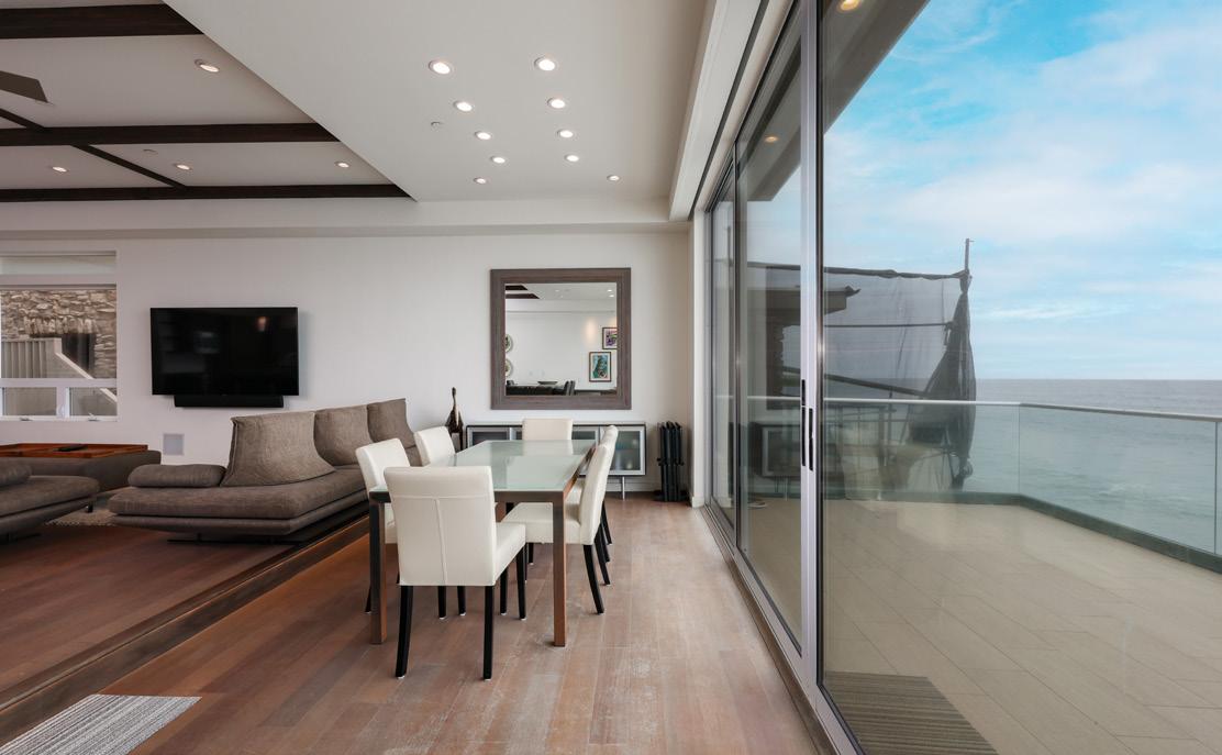 counters, electric shades, tankless water heater with circulation pump, dual-zone A/C and heat, skylight with opening, curved wood ceilings, surround-sound audio system, recessed and accent lighting, custom walk-in closet with storage and builtins, water filtration system, all electrical switches with master controls and dimmers, ceiling fans, and 2 decks plus a private deck/patio with steps to the beach. Panoramic ocean views from nearly every room!
