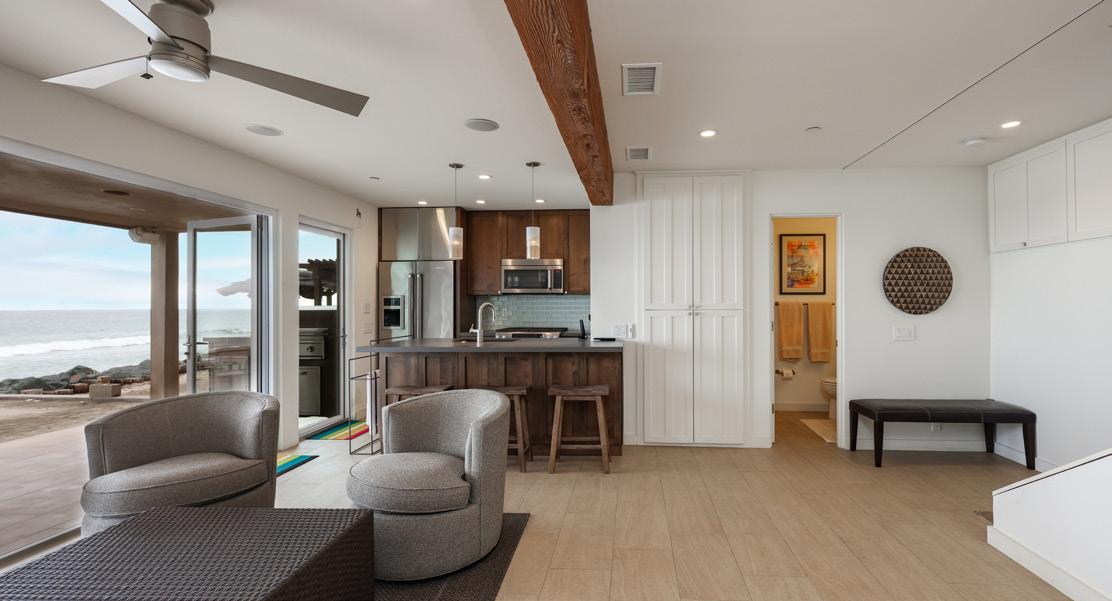 Along with a sought-after location, this 4-bedroom 4.5-bathroom offers a gourmet kitchen with book-matched cabinetry and walnut bar, Brazilian cherrywood flooring, 2 fireplaces, heated floors, built-ins, and an attached guest room/kitchen/bath with an optional separate entrance. The oceanfront primary suite, which includes a steam shower and soaking tub, opens to an expansive view deck.