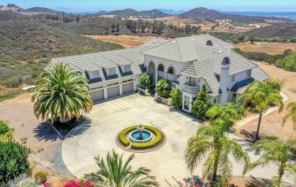 and gourmet kitchen with large dining nook, large center island, and walk-in pantry with custom wrought-iron door. The gorgeous backyard features a pool/spa and waterfall, large outdoor kitchen and BBQ, and covered seating area. This home sits on a large 11,762-square-foot lot. The upstairs has 4 bedrooms and 3 baths. Enjoy the huge primary suite with double-door entry, large private balcony, corner fireplace, custom double vanity, and large walk-in with organizers. No HOA or Mello-Roos. This home is located in one of the nicest neighborhoods in Rancho Del Rey.