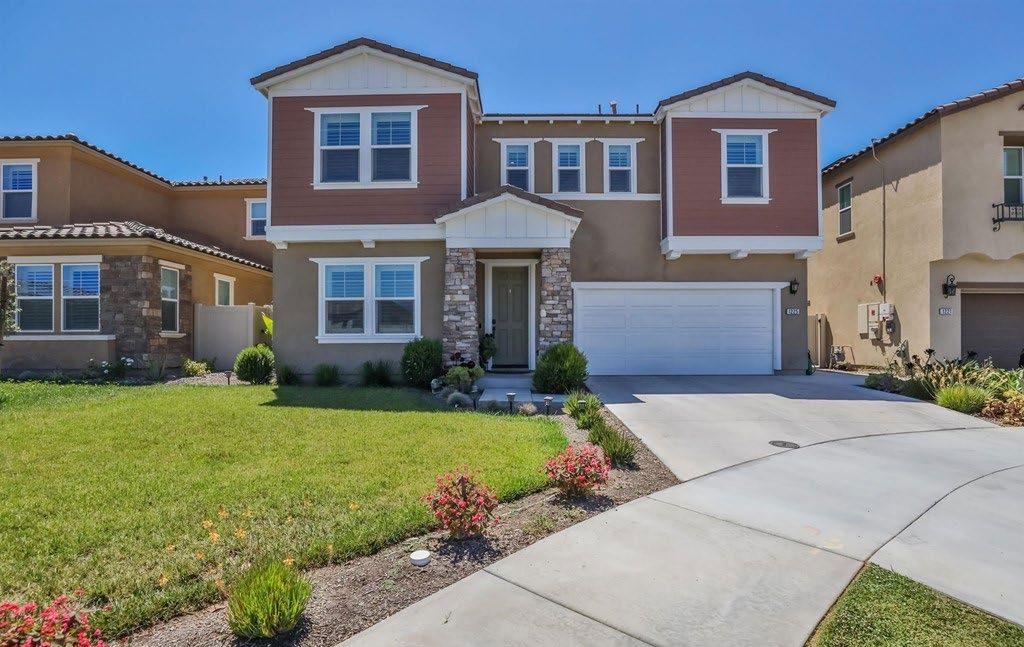 and gourmet kitchen with large dining nook, large center island, and walk-in pantry with custom wrought-iron door. The gorgeous backyard features a pool/spa and waterfall, large outdoor kitchen and BBQ, and covered seating area. This home sits on a large 11,762-square-foot lot. The upstairs has 4 bedrooms and 3 baths. Enjoy the huge primary suite with double-door entry, large private balcony, corner fireplace, custom double vanity, and large walk-in with organizers. No HOA or Mello-Roos. This home is located in one of the nicest neighborhoods in Rancho Del Rey.