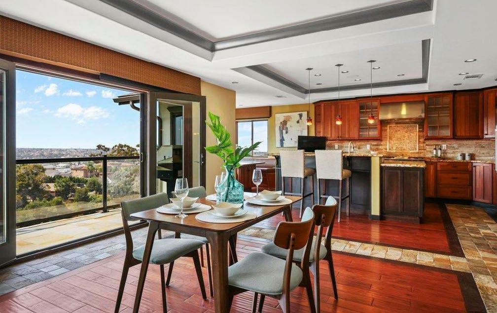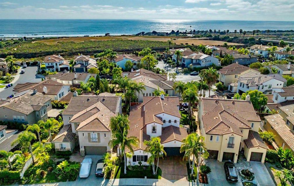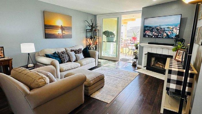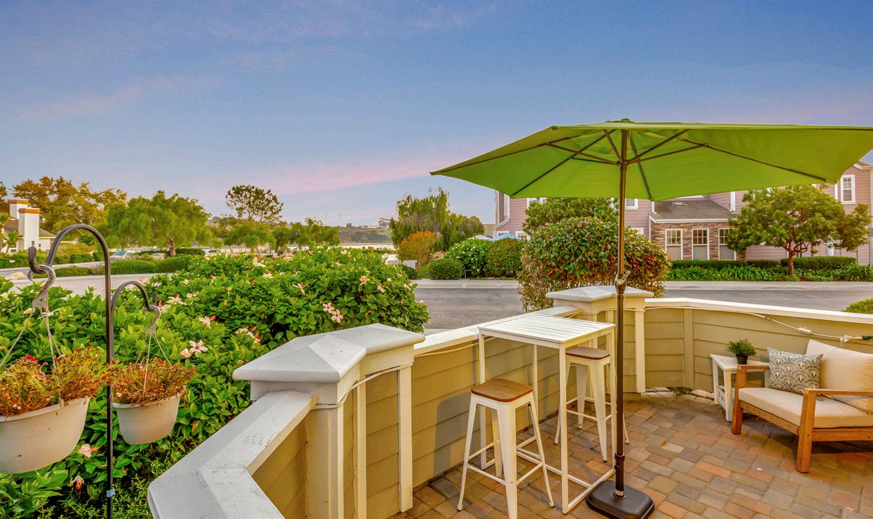 Steps away from the Agua Hedionda Lagoon with sandy beach and walking trails, your dream home offers stunning views of the lagoon from almost every room! Truly coastal living at its best! This gorgeous end-unit townhome lives and feels like a single-family home and is situated on a beautiful greenbelt with ponds, fountains and lush landscaping. From the moment you step into the open and airy living room with soaring cathedral ceilings and Italian Porcelain tile, you know that this is the home you have been searching for! Just imagine entertaining in the wellthought-out living spaces! The remodeled and updated kitchen is a chef’s dream come true with stainless-steel appliances, Quartz countertops, soft close drawers, Wolf 6 burner stove, pull-out drawers, farmhouse sink and much more! The kitchen