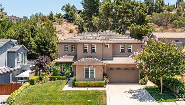 daily living and unforgettable entertaining. A large island anchors the kitchen and complements handsome wood cabinetry with glass uppers, two garden windows, a breakfast nook, granite countertops with full backsplash, and high-end stainless-steel appliances, including a built-in refrigerator. Dramatic architecture, fresh paint, new carpet, tile flooring, and a 3-car garage are also featured. A detached office makes a great studio or workshop, and the luxe primary suite displays a fireplace, a sitting area with bay window, a walk-in closet, dual vanities, a soaking tub, separate shower and a curved glass window.