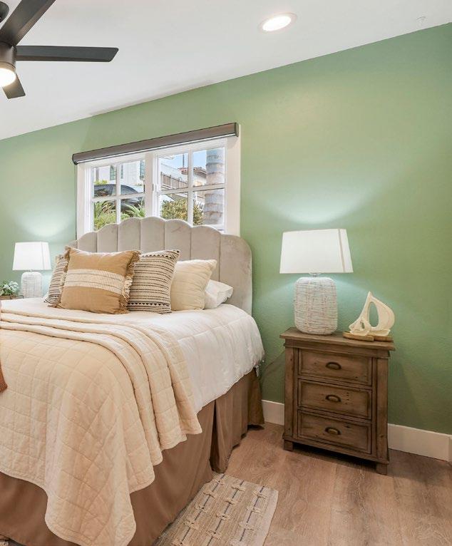 Both bedrooms are spacious, and every detail in the home was thoughtfully curated. Laundry is conveniently located between the bedrooms, and the primary suite is a showstopper. The primary bathroom shines with refined updates, including a large shower and dual vanity, and the generous bedroom offers incredible indoor-outdoor living with a large west-facing patio with ocean views.
