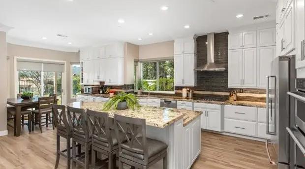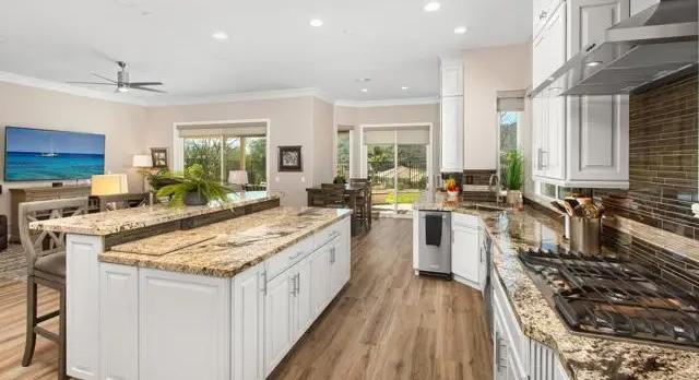 Gorgeous remodeled home in coveted Silverado Estates. This beautiful single level home sets in a cul-de-sac overlooking the legendary Singing Hills golf course. The newly remodeled kitchen features top of line appliances, granite counter tops, expanded island with USB ports, ceramic tile flooring and custom floor to ceiling cabinets.