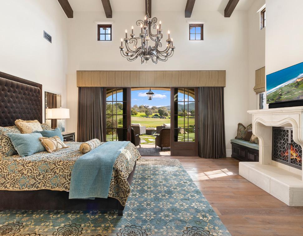 Santaluz single-story custom home with rare double ocean and golf course views! Wake up to an amazing sunrise view of hole #7 with Black Mountain as a backdrop. Later in the day, stay warm in front of a fire wall and watch hot air balloons and a beautiful sunset ocean view! Architect Scott Grunst designed this updated Tuscan home with 3 en-suite bedrooms, state-of-theart theater, and a multipurpose casita. The movie theater can be converted into a bedroom as well.