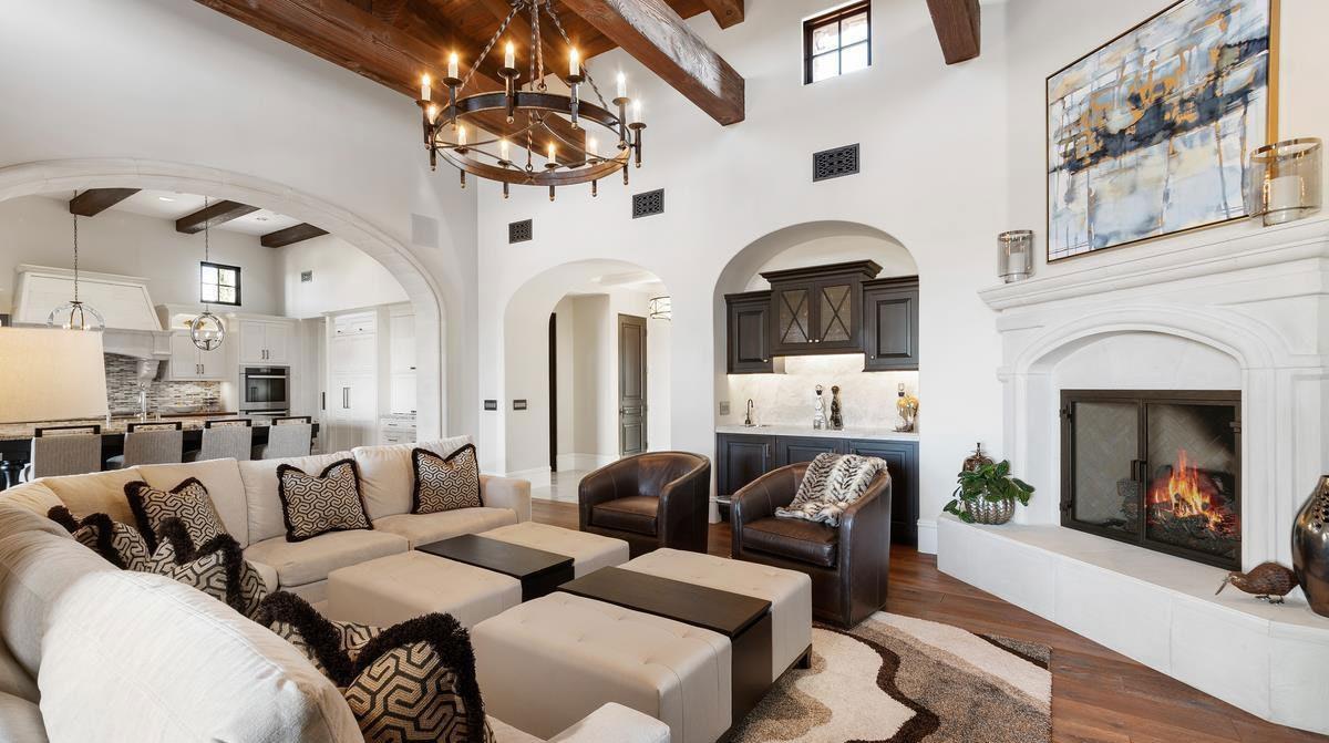 Santaluz single-story custom home with rare double ocean and golf course views! Wake up to an amazing sunrise view of hole #7 with Black Mountain as a backdrop. Later in the day, stay warm in front of a fire wall and watch hot air balloons and a beautiful sunset ocean view! Architect Scott Grunst designed this updated Tuscan home with 3 en-suite bedrooms, state-of-theart theater, and a multipurpose casita. The movie theater can be converted into a bedroom as well.