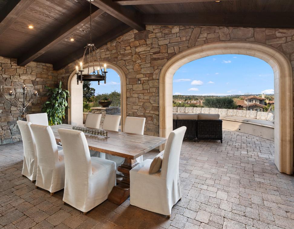 This home is perfect for entertaining in the dining room with its groin vaulted ceiling and wine wall, west-facing heated loggia, or one of the private outdoor courtyards. This home has wood beams, custom cabinetry by Rutt, Miele appliances, granite, quartzite, and marble countertops, custom light fixtures, Rohl and Hansgrohe plumbing fixtures, 2 washers and dryers, Sierra Pacific windows and doors, whole house filtration system, and custom California closets. Other features include an oversized spa with a waterfall, a putting green, fully owned solar with backup Tesla batteries, and droughtresistant landscaping with drip irrigation.