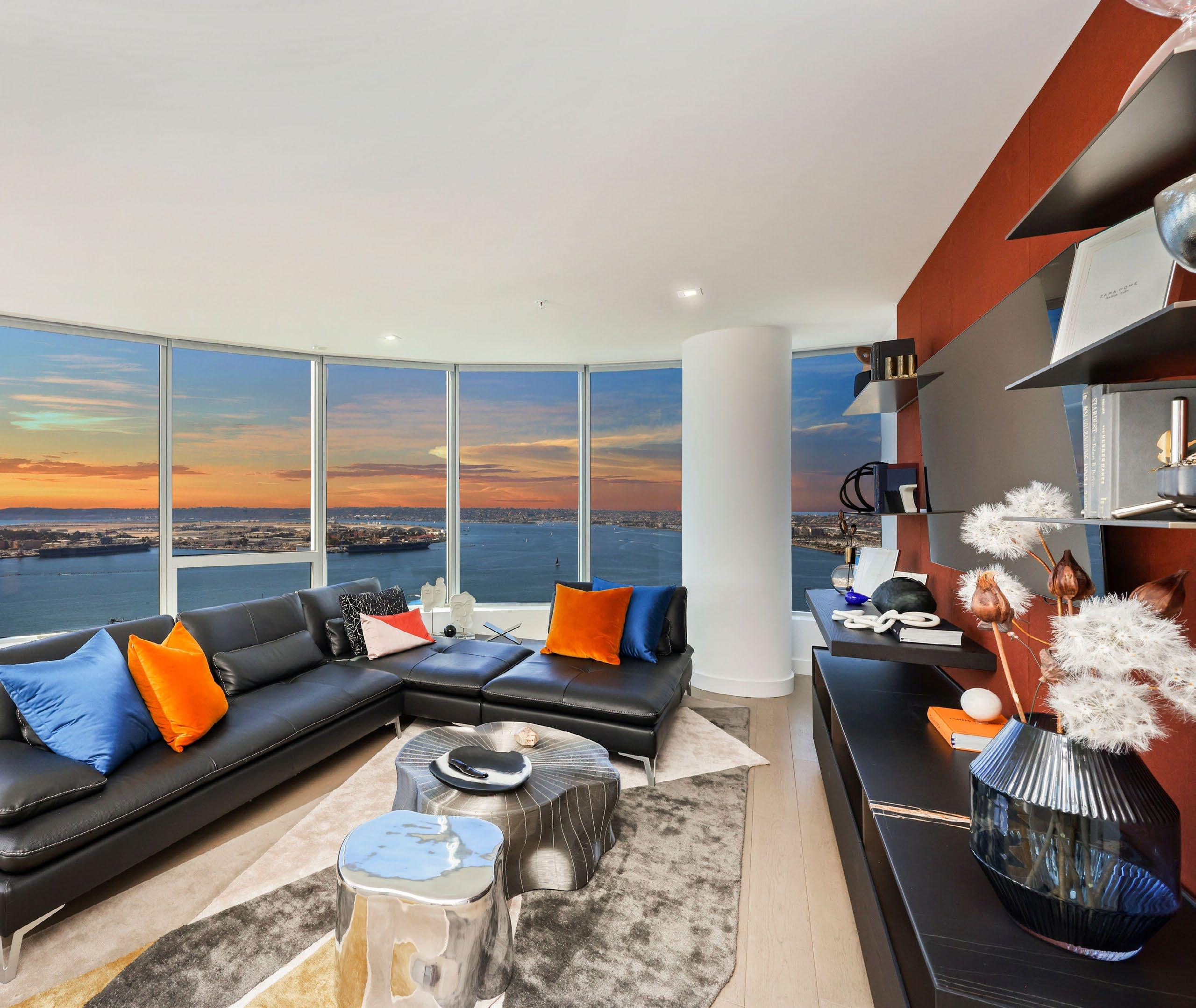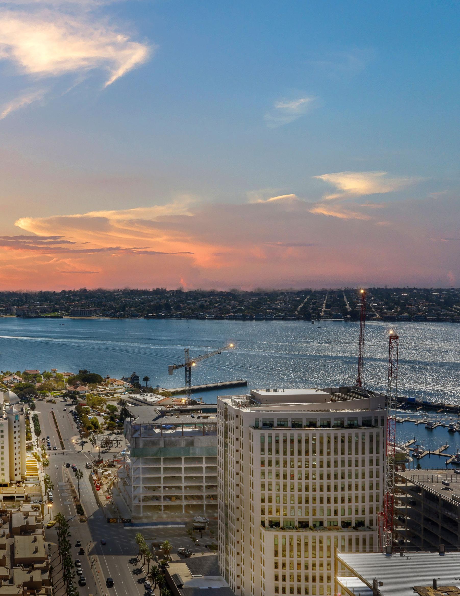 For those who only want the best! With breathtaking views spanning the airport, harbor, bay waterfront and Coronado, this unit offers lots of natural light and a floor plan with 3 BR, 3.5 BA, den, and spacious terrace. The residence features a bright and open layout with expansive windows for enjoying the spectacular views, a custom-designed kitchen, state-of-the-art appliances, top-of-the-line closet organizers, two side-by-side parking spaces and a private storage unit. It is just steps from the waterfront, Seaport Village, The Rady Shell at Jacobs Park and the Embarcadero. Pacific Gates offers the ultimate in luxury high-rise living with amenities such as a concierge, business center, yacht share program, pool, spa, cabanas, fitness center, steam room and sauna, and a pet retreat