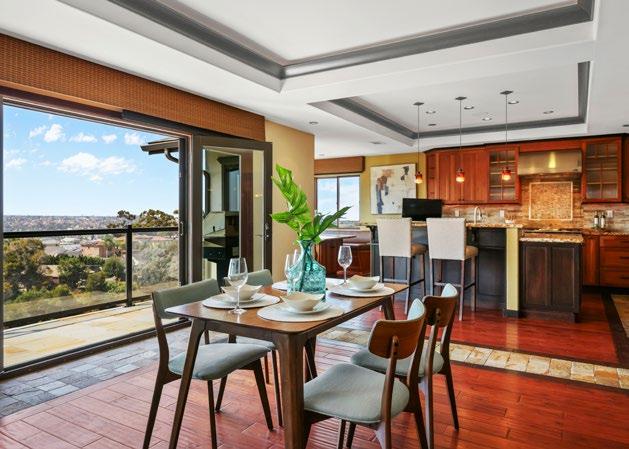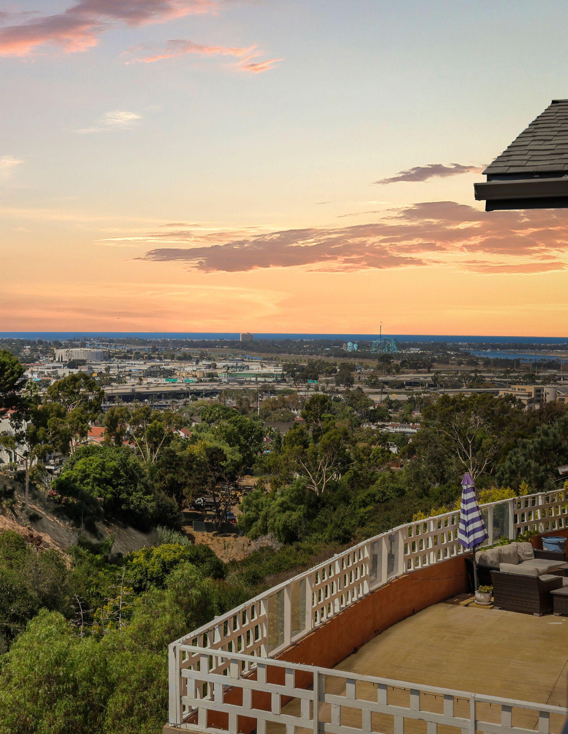Experience stunning panoramic views of the ocean, bay, and city in this exquisite Contemporary Craftsman home in North Mission Hills. Perched atop a hill above historic Heritage Park and overlooking the picturesque Presidio Canyon, this property boasts a spacious multi-level backyard and a charming viewing deck. The open-concept gourmet kitchen features stainless steel appliances, granite countertops, custom cherry cabinetry, and built-in breakfast seating that captures breathtaking vistas. Elegant fnishes throughout include slate and cypress hardwood fooring, as well as solidcore mahogany doors. Remodeled in 2008 to expand the square footage, the home also offers modern energyeffcient upgrades such as solar panels, dual-pane windows, a tankless water heater, and a water softener/ purifer. With a large family/media/game room, this residence is ideal for both entertaining and relaxation. The smart home system, controlled via an app, manages the lights, A/C, and window shades, while a surround sound speaker system enhances the atmosphere. Don’t miss this exceptional opportunity to live in one of San Diego’s most coveted neighborhoods.