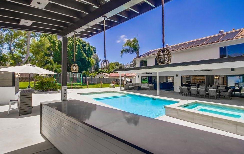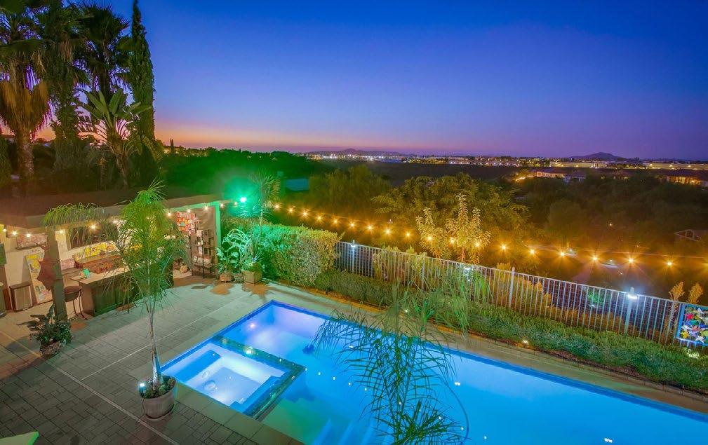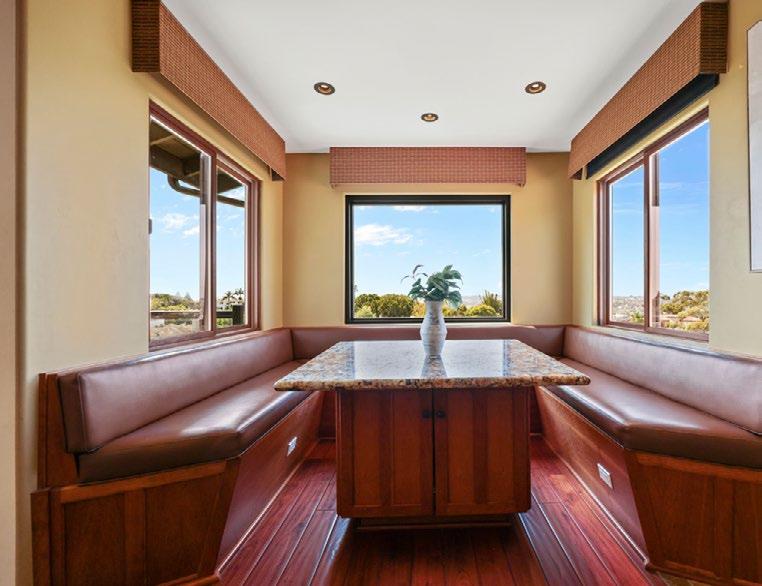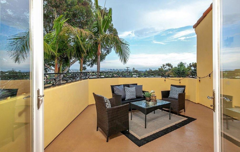 Experience stunning panoramic views of the ocean, bay, and city in this exquisite Contemporary Craftsman home in North Mission Hills. Perched atop a hill above historic Heritage Park and overlooking the picturesque Presidio Canyon, this property boasts a spacious multi-level backyard and a charming viewing deck. The open-concept gourmet kitchen features stainless steel appliances, granite countertops, custom cherry cabinetry, and built-in breakfast seating that captures breathtaking vistas. Elegant fnishes throughout include slate and cypress hardwood fooring, as well as solidcore mahogany doors. Remodeled in 2008 to expand the square footage, the home also offers modern energyeffcient upgrades such as solar panels, dual-pane windows, a tankless water heater, and a water softener/ purifer. With a large family/media/game room, this residence is ideal for both entertaining and relaxation. The smart home system, controlled via an app, manages the lights, A/C, and window shades, while a surround sound speaker system enhances the atmosphere. Don’t miss this exceptional opportunity to live in one of San Diego’s most coveted neighborhoods.