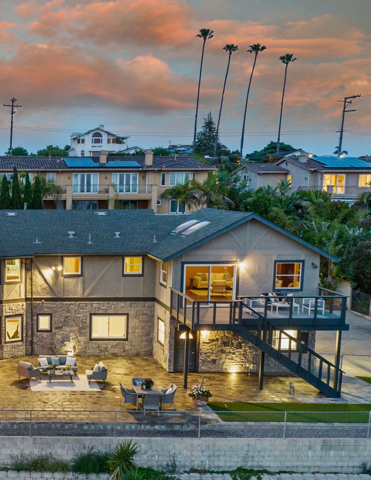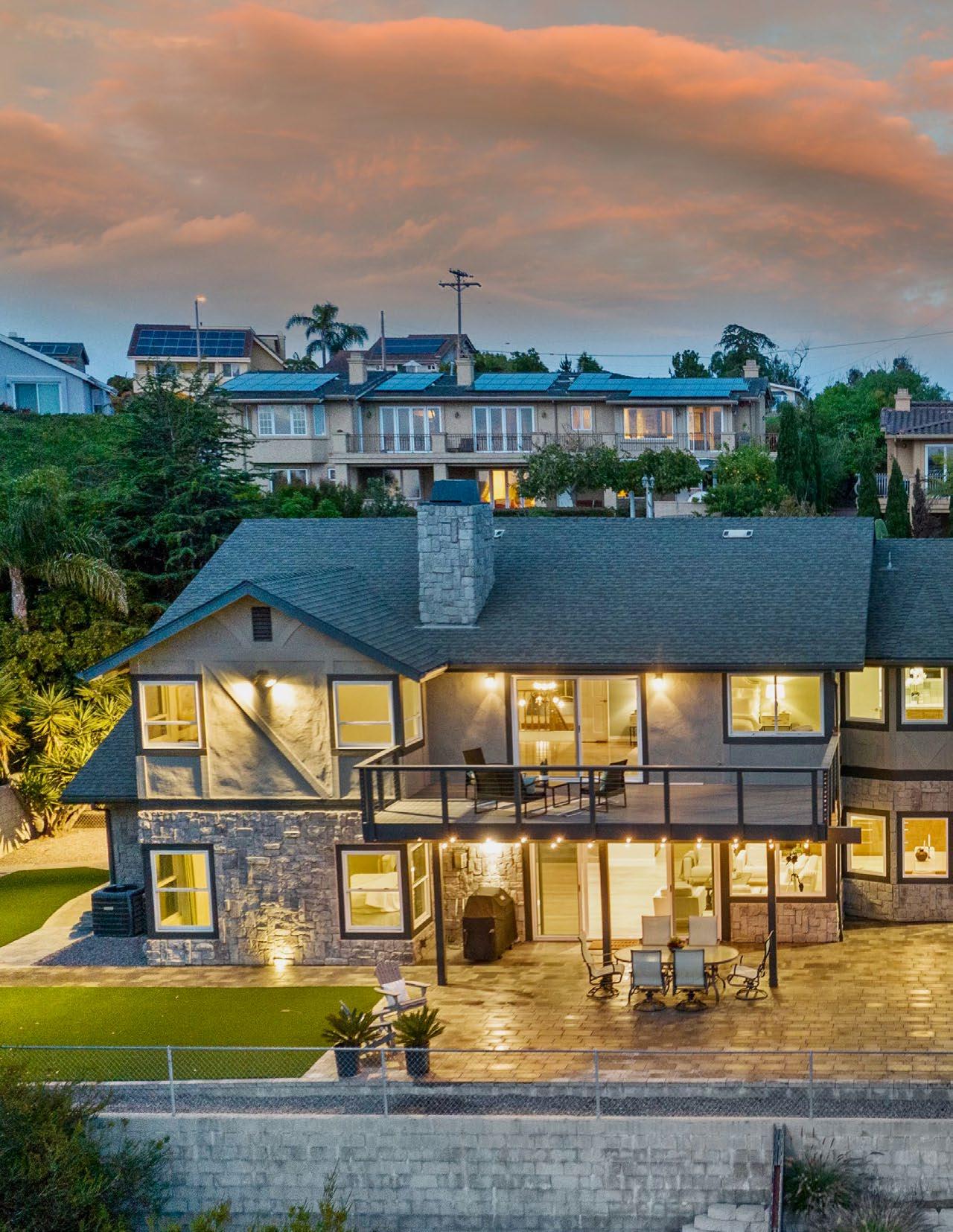 Absolutely stunning, large, custom ocean view estate spanning 5,424 sq. ft. on nearly a 1/2-acre private lot. This magnificent home is accessed via a 100-yard private drive, situated on North County’s highest coastal bluff closest to the ocean. Nestled into the brow of the summit, it sits just below where Station White, the North County Naval Lookout Station from WW2, once stood. At nearly 300 ft. elevation and only 1 mile from the ocean, this estate offers commanding, panoramic, and spectacular sit-down ocean views with year-round sunsets from both levels of the home.