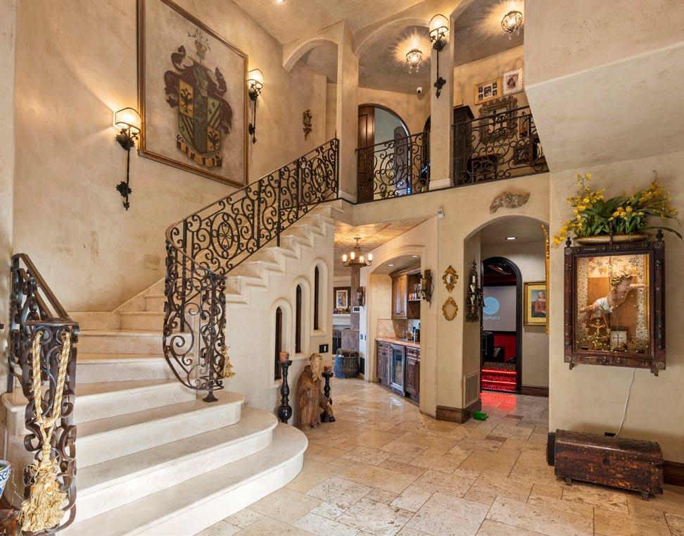 Situated on an 20,120 ESF lot with magnificent views, this updated beauty has paid solar, a movie theater, gated courtyard, and an abundance of custom details including 4 fireplaces, 3 fountains, a curved wrought-iron staircase, and arched wooden doors. The kitchen features a large center island, upgraded appliances, chef’s range, built-in coffee machine, and a large pantry. 2 bedrooms downstairs and 3 upstairs; 3 of the bedrooms have baths en suite. The primary bedroom has its own covered balcony, walk-in closet, and an expanded bath with walk-in shower and freestanding tub. The formal dining room opens to an exterior covered dining area with nearby fountain. Outdoors, you’ll also find a covered patio with fireplace, a large kitchen area, pool, spa, and a deck overlooking spectacular views. The lot includes fruit trees, grapes, and tall, mature trees for privacy. This one-of-a-kind property is located in Rancho Del Rey, close to all and with no HOA or Mello-Roos.