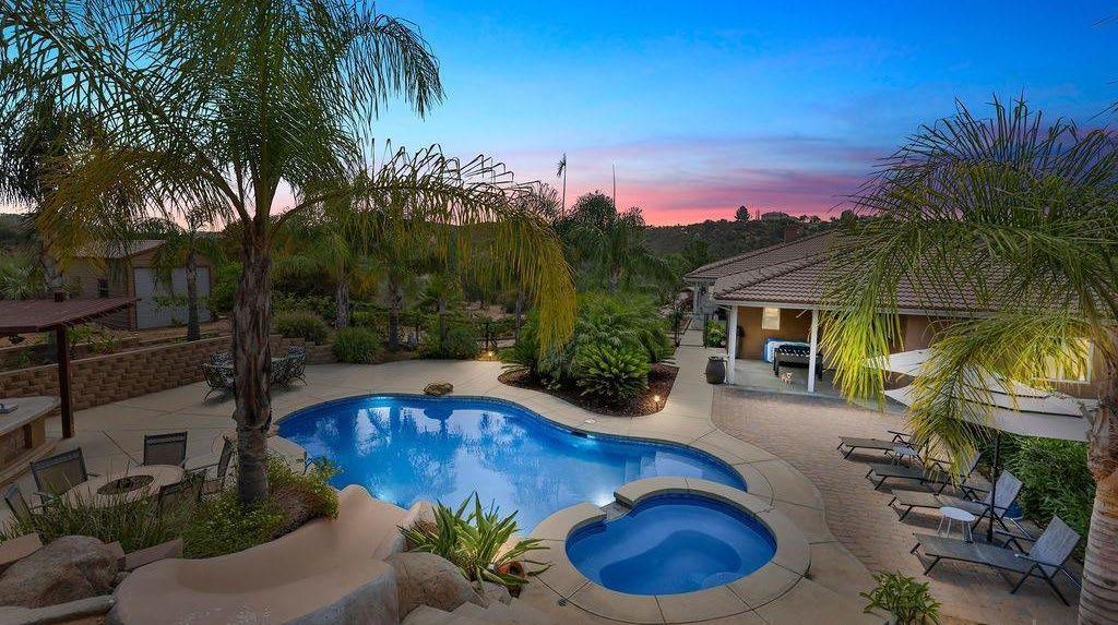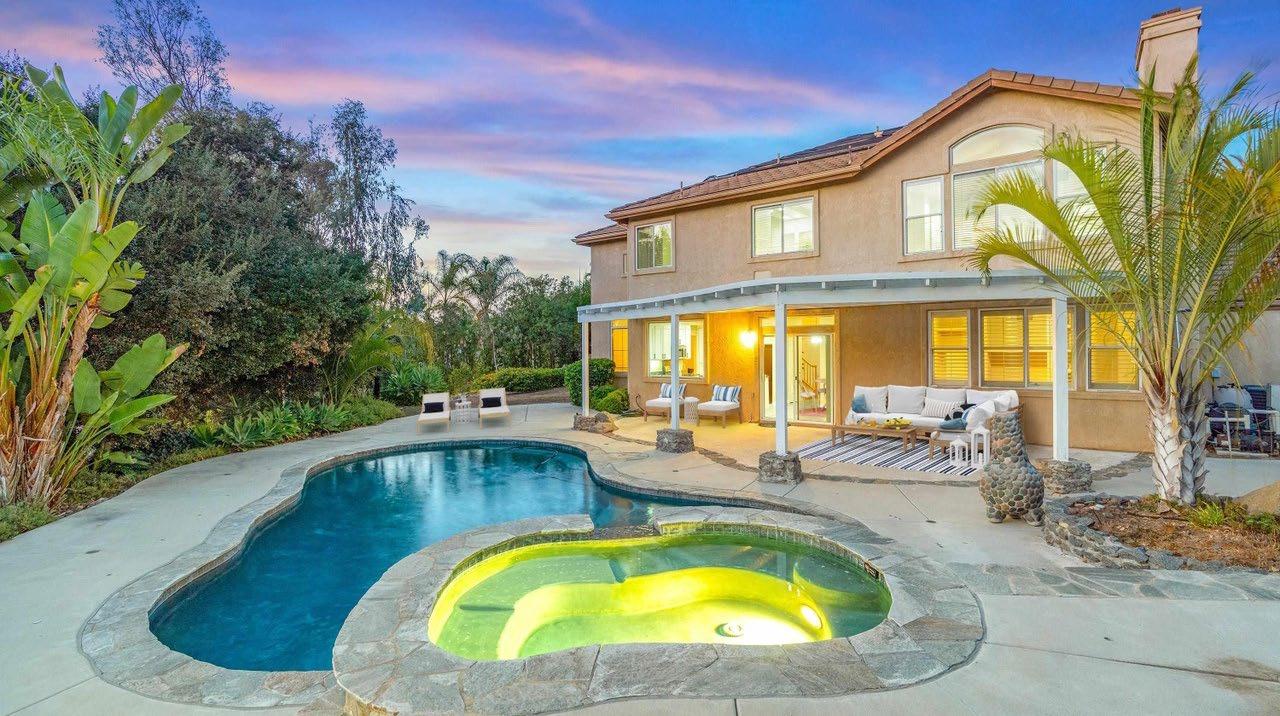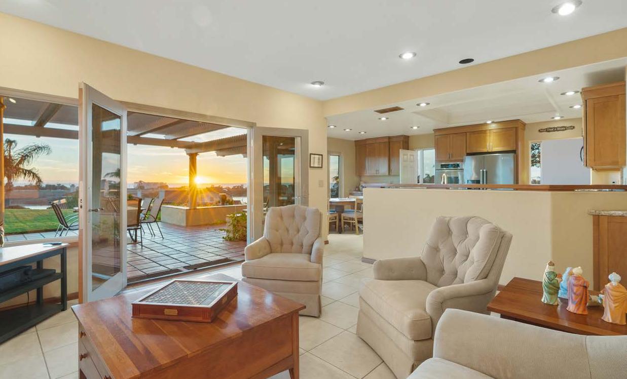 This elegant single-family home sits on one of the largest lots in Capri, Carlsbad. Tucked away in a quiet cul-de-sac, this circular-shaped lot offers unobstructed views, allowing a full 180-degree view of the ocean & lagoon. With 4 beds and 3 baths, this property has a secondary bedroom suite on the main level, 3 built-in freplaces, 3-car garage and is just over 2,383 sq.ft. The expansive backyard offers a commanding ocean view. With a raised lounge deck and an above-ground spa, this backyard is the perfect space for entertaining. Watch the sunrise to sunset in the highly desirable neighborhood of Capri, just minutes from the I-5 freeway and the downtown Carlsbad Village area.
